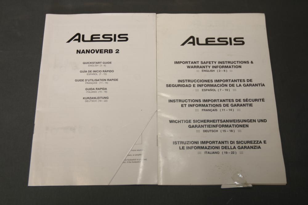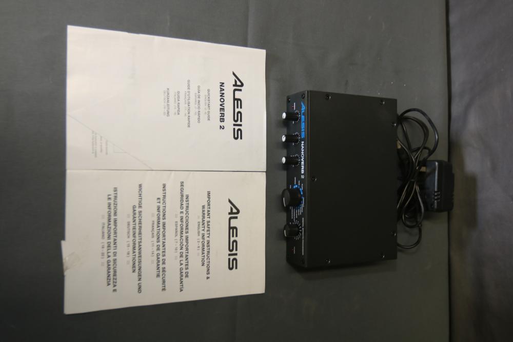 Alesis Nanoverb 2 Music Effects Processor. Includes the processor unit, power adapter, and manuals. Features various digital effects with intuitive controls including input, mix, program, and output dials. Comes in the original box. Pickup only.