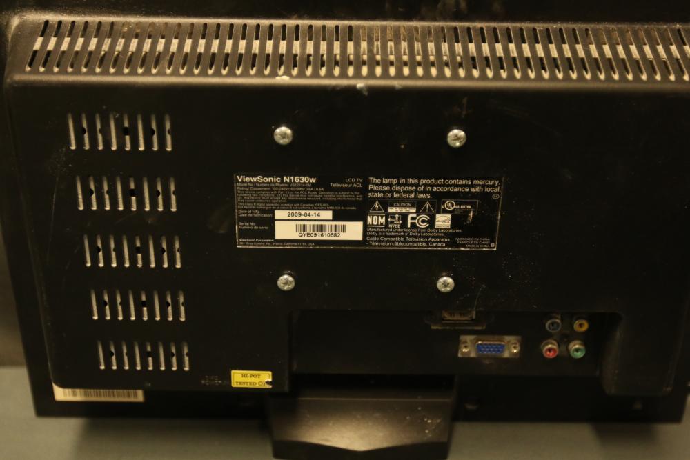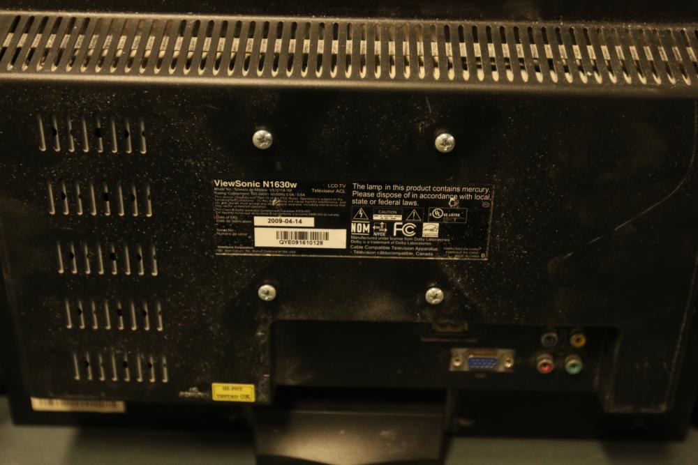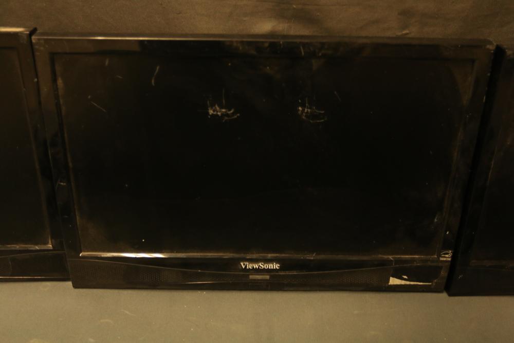 Quantity of 3 ViewSonic N1630W 15.6 inch 720p LCD TVs and power supply cords with Chief TS118SU Small Thinstall Dual Swing Arm Wall Display Mount. The wall display mount is missing some hardware. Includes multiple wall mount brackets. Pickup only.