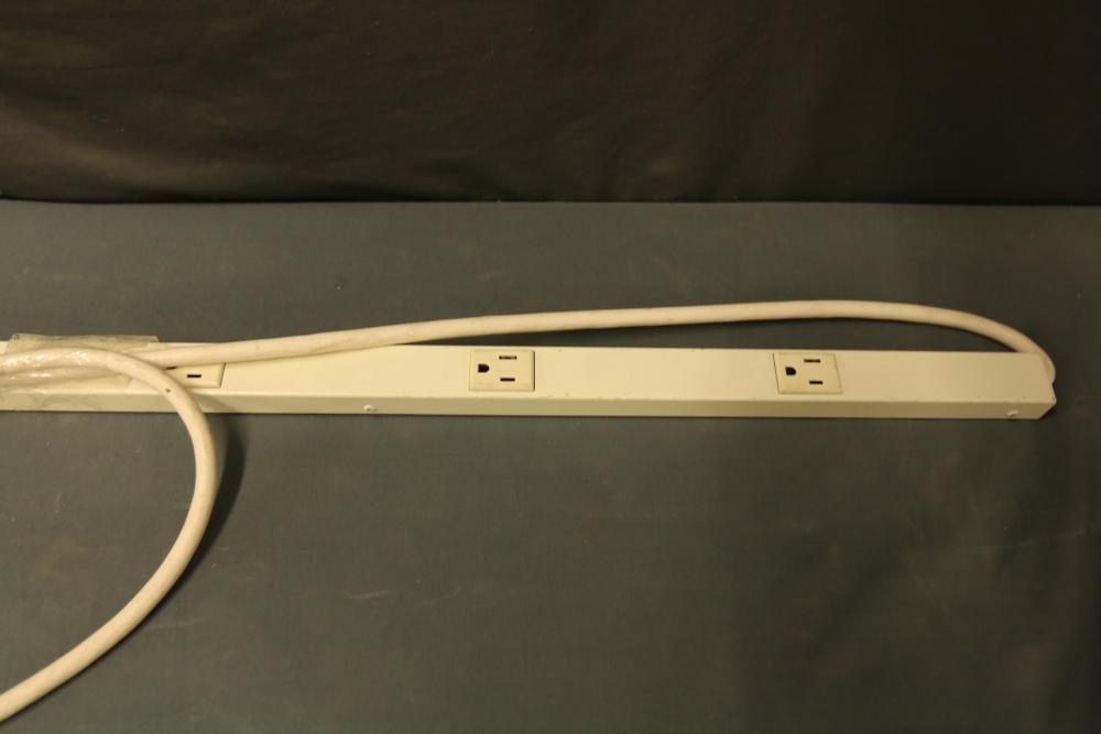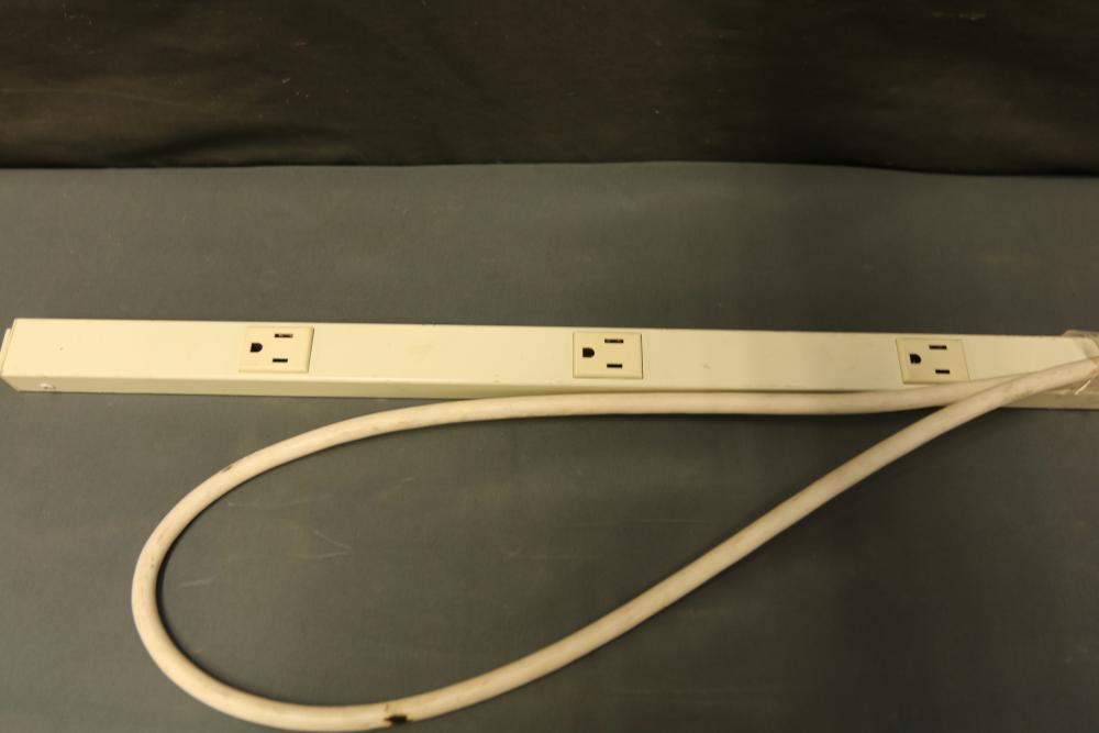 Two relocatable power taps - one featuring 6 outlets and another featuring 10 outlets. The 6-outlet unit has white housing, while the 10-outlet unit includes black housing with orange sockets. Both units are designed for indoor use only and should not be connected to another relocatable power tap as per manufacturer labels. Pickup only.