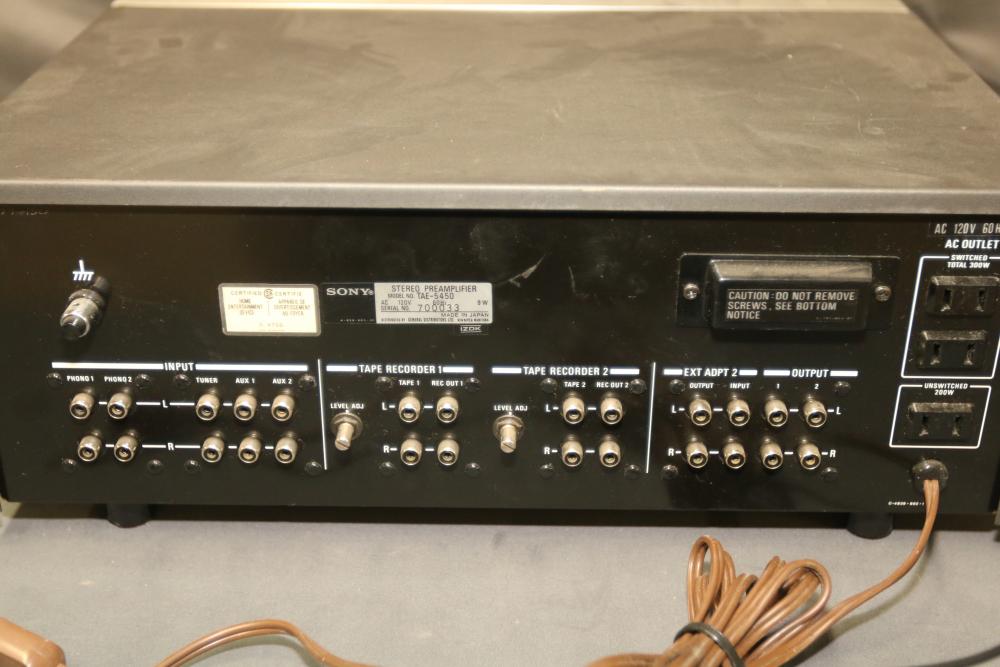 N/F Sony TAE-5450 Stereo Pre Amplifier and Heathkit AA-1506 Vintage Power Amplifier. Both units are currently not functional. Includes the Sony TAE-5450 with a variety of input and output options and the Heathkit AA-1506 with speaker connectors and multiple inputs. Pickup only.