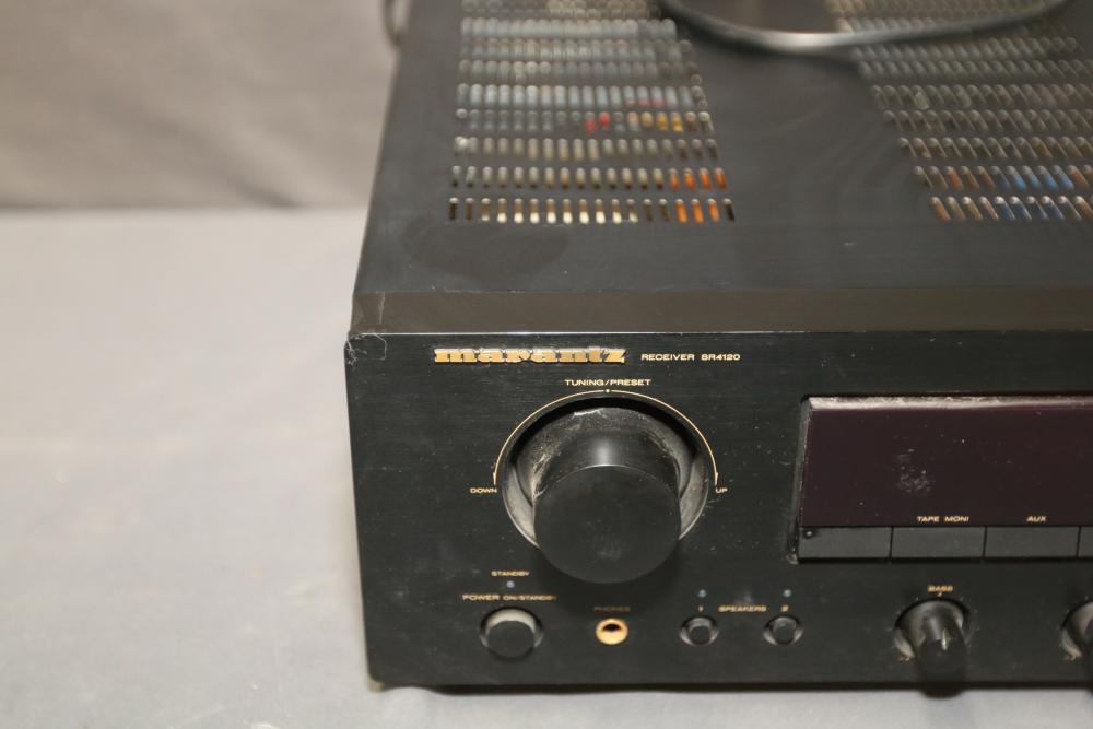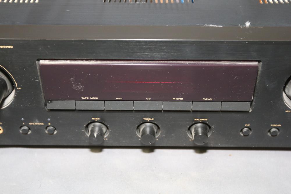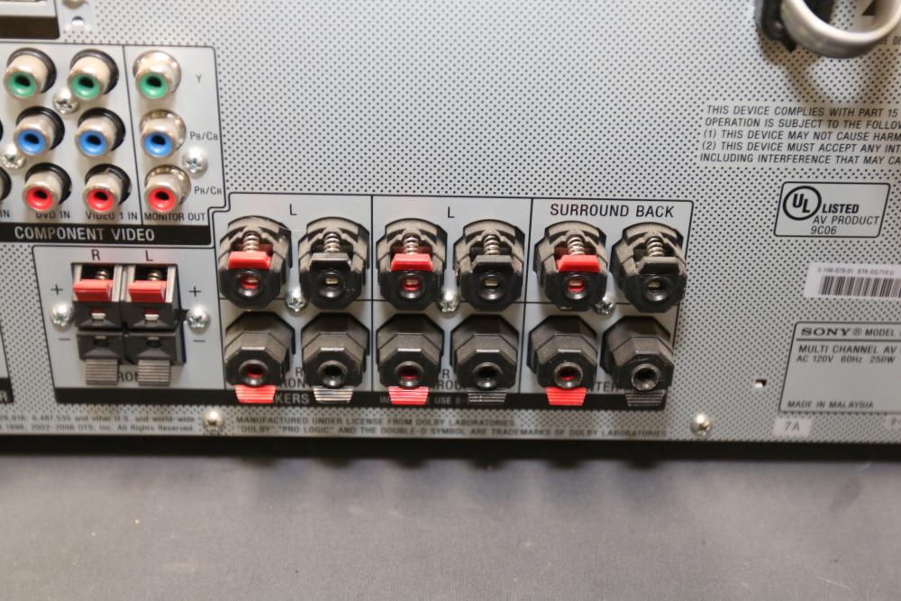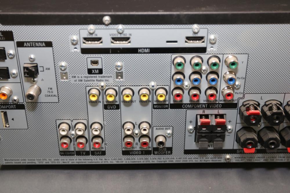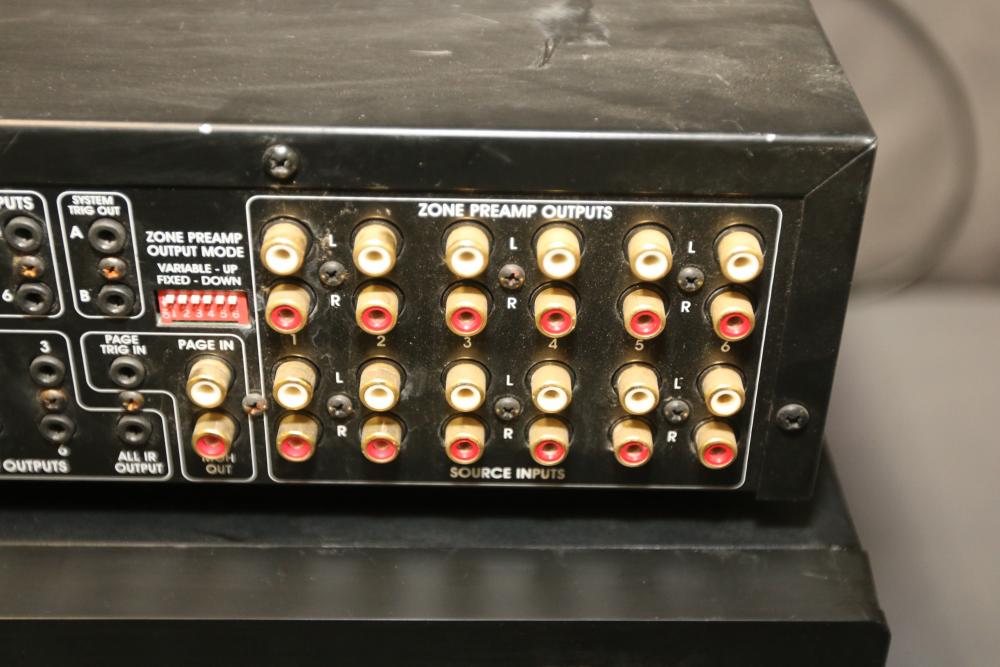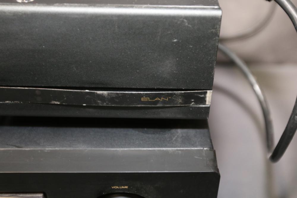 Marantz SR412/U1B Stereo Receiver, Sony STR-DG710 Home Theater Receiver, and Elan Home Systems Model S6 Multi-Zone Controller and Amplifier. Features various input and output options, controls, and connectivity for diverse audio and video integration. Units show signs of wear from previous use. Pickup only.