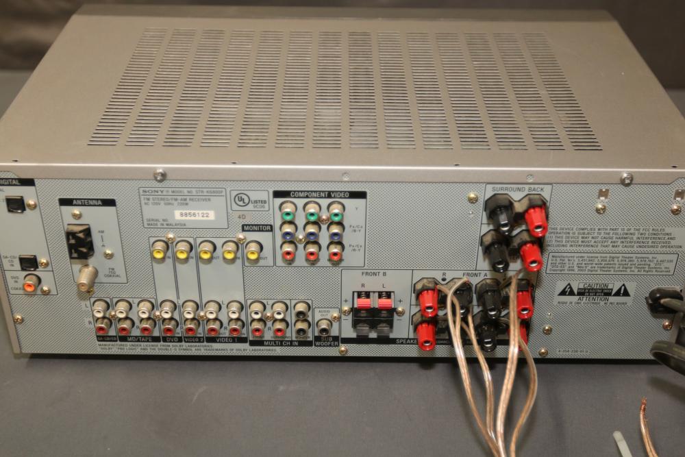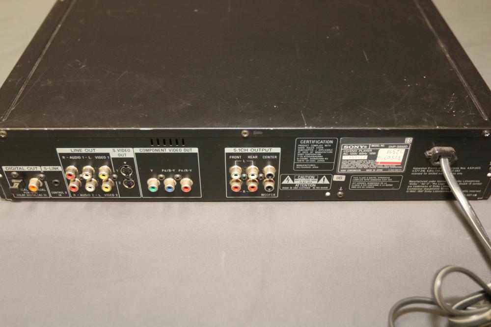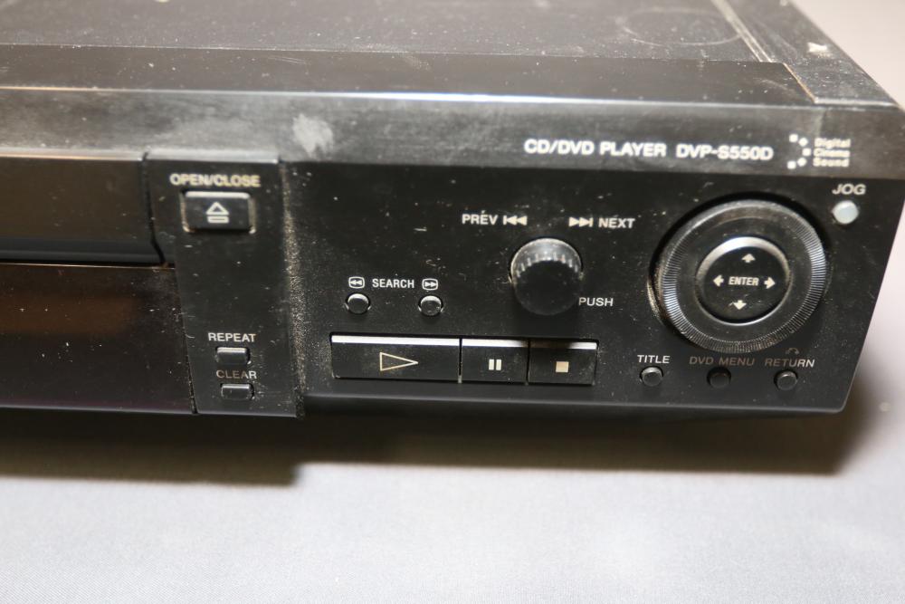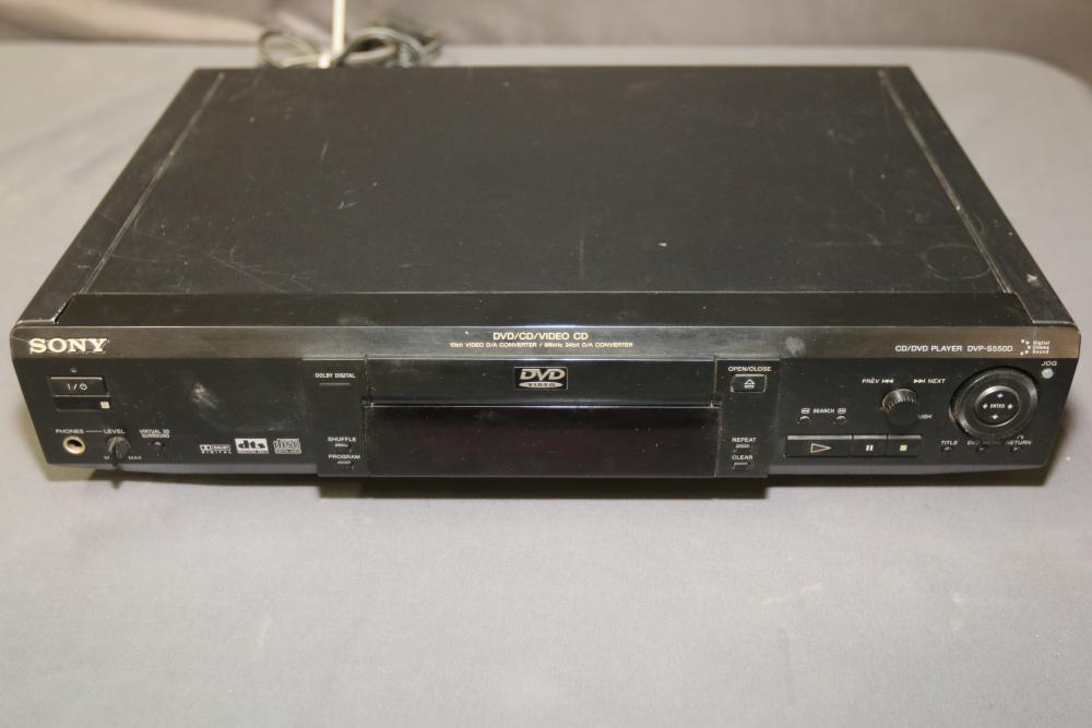 P/F Sony STR-K6800P FM Stereo/AM-FM Receiver, Sony DVP-S550D CD/DVD Player (currently not functional), and Philips DVP3962 DVD Player. All items show signs of use but include essential connections. Pickup only.