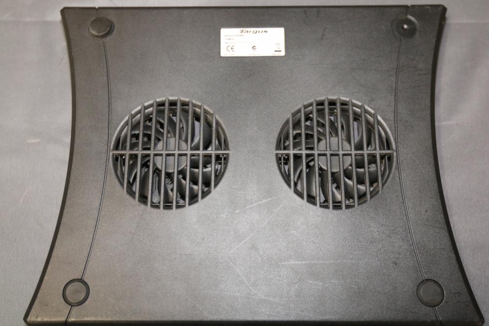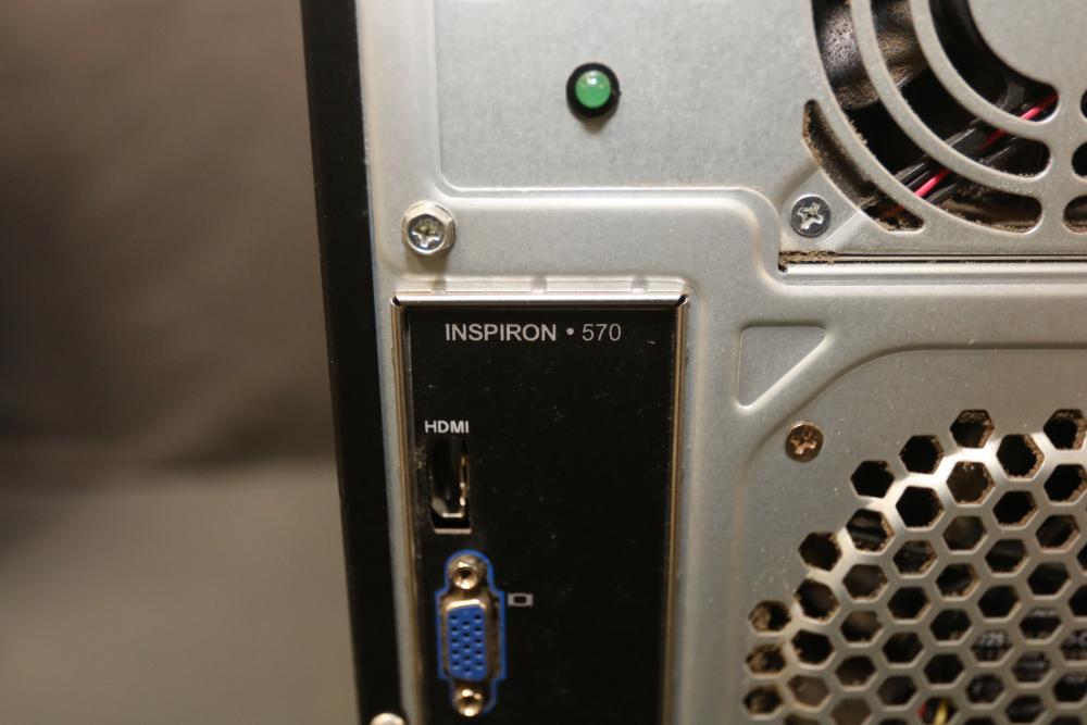 Desktop PC Bundle with Dell Inspiron 570 desktop PC, a Dell 17 inch LCD monitor, a Gateway 18 inch LCD monitor, a Logitech Bluetooth keyboard, and a Targus 16 inch Dual Fan Chill Mat. Includes an Interex Master Computer Power Strip Surge Protector, multiple Western Digital portable external hard drives ranging from 500GB to 1TB, a Seagate 1TB external hard drive, two GL.iNet Mini Smart Routers, a Cyber Acoustics computer speaker, and a Netgear AC6210 High Gain WiFi adapter. Also features various cables including power supply, VGA, and USB cables. Pickup only.