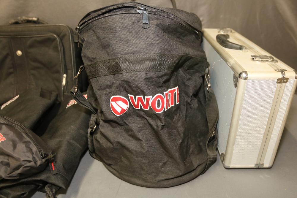 Bags and carrying cases by Gator Cases, Avenues, and Worth. Includes various sizes and styles, featuring materials designed for portability and protection. Items appear to include soft and hard cases along with zipper closures and reinforced handles for durability. Pickup only.