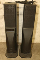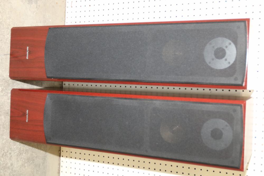 Alpha Technology MAC2000F Floor Standing Loudspeakers. Features a power handling capacity of 250 watts RMS, frequency response of 38Hz-22000Hz (+/- 3 dB), sensitivity of 89 dB (+/- 3 dB), and impedance of 8 ohms. Includes rear-facing double binding post connections and dual rear ports. Pickup only.