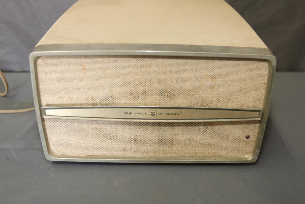 N/F Voice of Music Tape-O-Matic Model 730 Vintage Stereo Tube Reel to Reel Tape Deck. This tube-based reel-to-reel tape deck features playback, recording, and tone adjustment controls. The unit is currently not functioning. Pickup only.