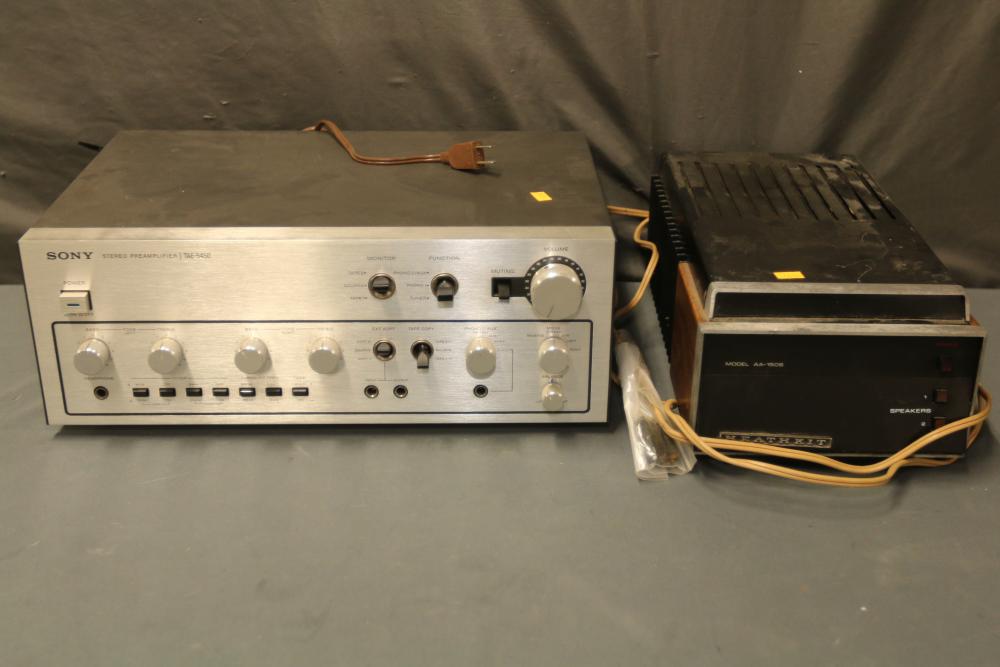 N/F Sony TAE-5450 Stereo Pre Amplifier and Heathkit AA-1506 Vintage Power Amplifier. Both units are currently not functional. Includes the Sony TAE-5450 with a variety of input and output options and the Heathkit AA-1506 with speaker connectors and multiple inputs. Pickup only.
