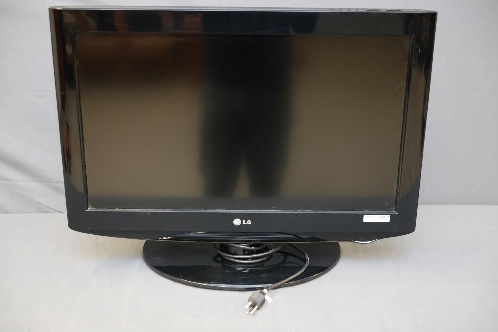 LG 26LH20-UA 720p LCD HDTV, No Remote. The unit features a compact 26-inch screen and a resolution of 720p. Connectivity options include HDMI, component, audio/video, and PC input ports. Testing of operational functionality is required. Power cord is attached. No remote is included. Pickup only.