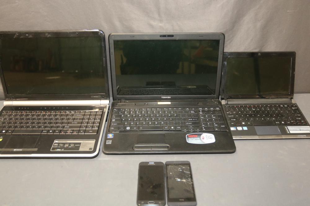 N/F Gateway NV53 Laptop, Toshiba Satellite (655D-S5300) Laptop, Gateway LT2104U Netbook Laptop, Samsung Galaxy J7, and HTC Desire 610. Items are currently not functioning. Pickup only.
