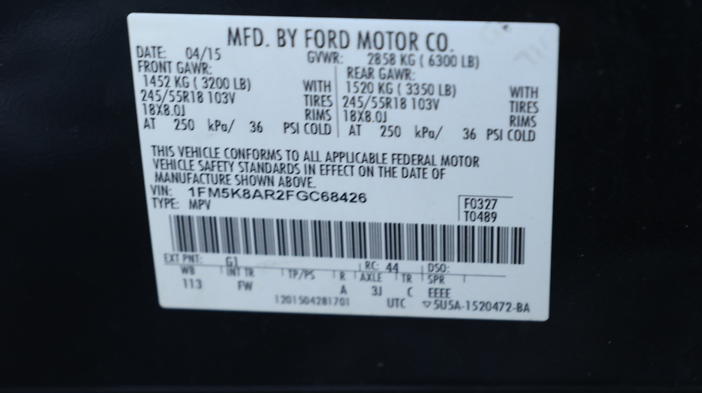 2015 Ford Explorer with a 3.7L V6 DOHC 24V engine. VIN: 1FM5K8AR2FGC68426. Odometer reading: 92904. Seller reports: Ran when removed from service, sitting for a while, current operating condition unknown, may have mechanical issues. Title & key available.