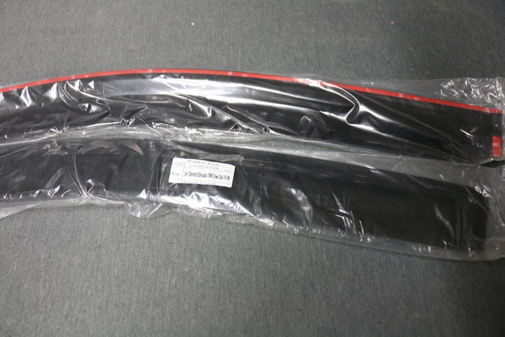 Optimal CVSVVS19 Smoke-Tinted Tape-On Side Window Visor for Chevrolet Silverado 1500 for Models 2019-2026. Includes a set of visors and installation materials such as an alcohol pad and adhesive strip for a secure fit. Designed for 2019-2026 Chevrolet Silverado 1500 models. Pickup only.