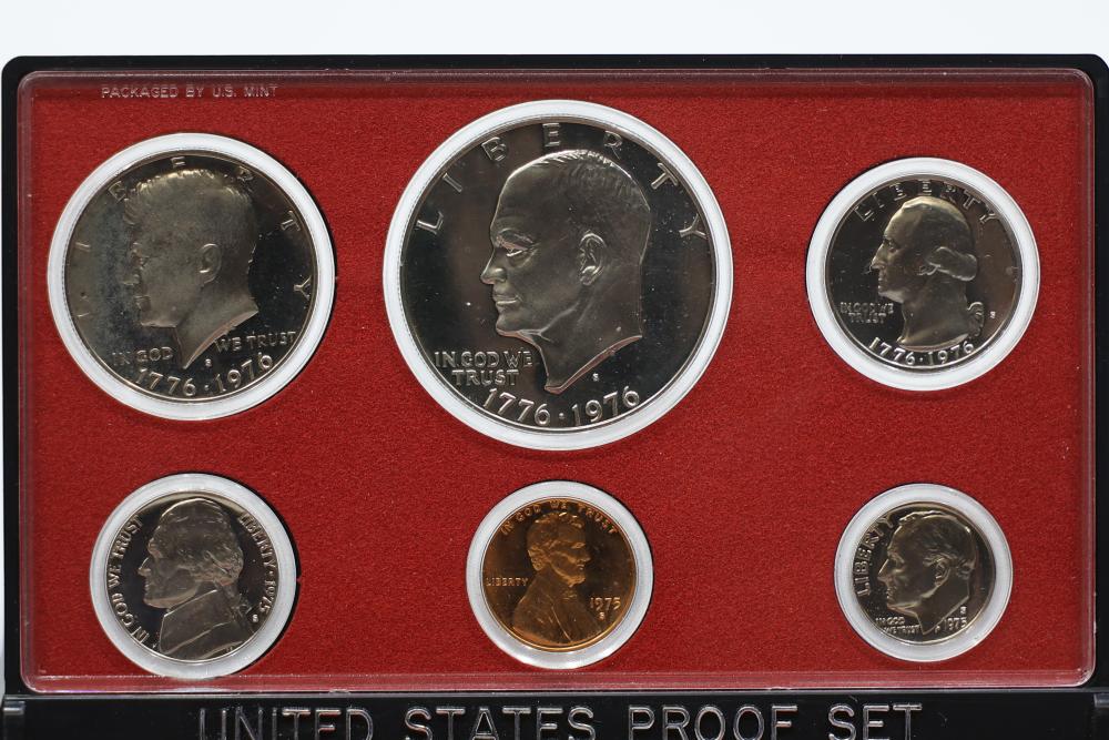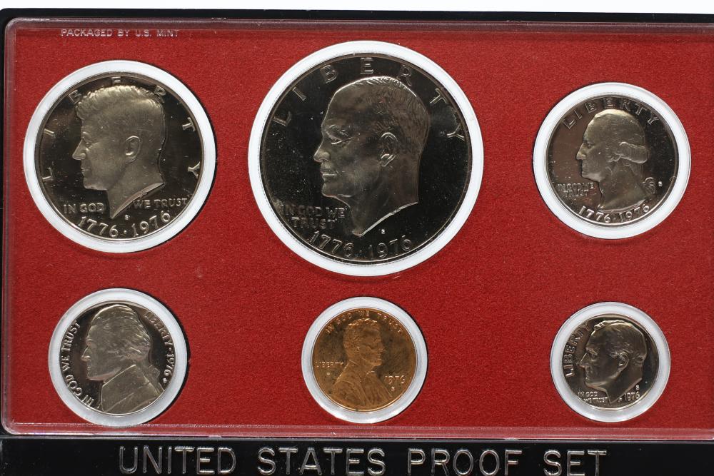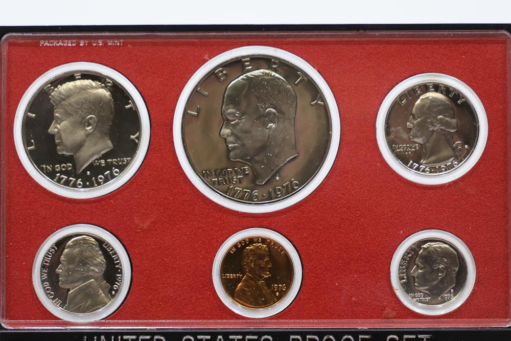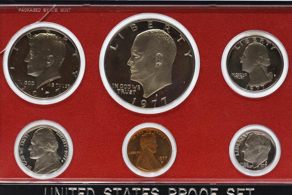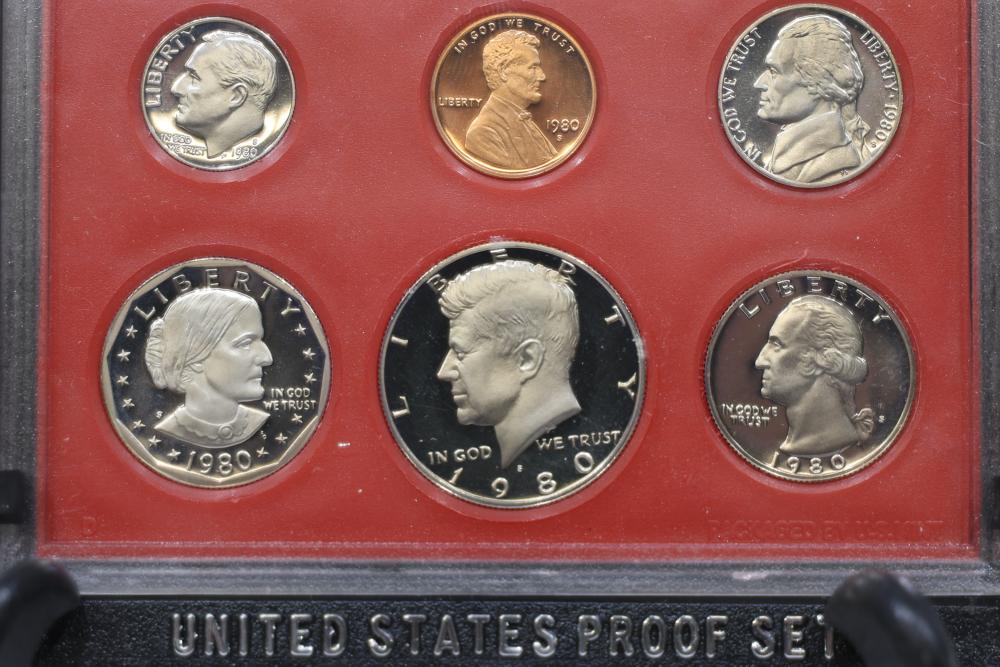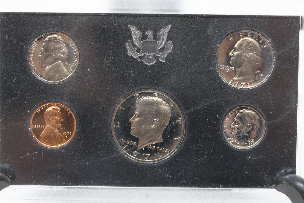 Proof Coin Sets and Two Eisenhower Dollar Coins with years including 1968, 1969, 1970, 1971, 1972, 1973, 1974, 1975, 1976, 1977, 1978, 1979, 1980, 1981, and 1982.