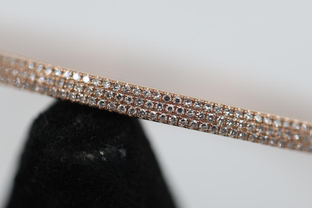 14K Stamped Rose Gold Bracelet with Many Small Diamonds. Total weight being 9 grams.
