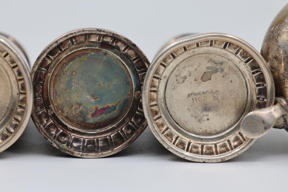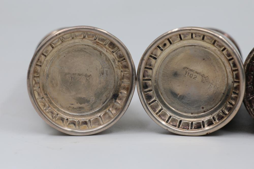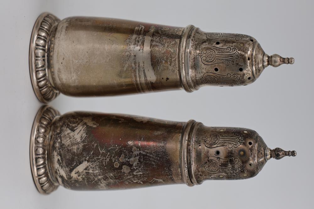 Five Sterling Silver Salt and Pepper Shakers. All items are stamped sterling. Total weight being 330 grams.