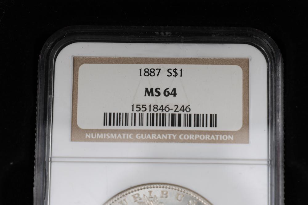 Items include S proof coin sets 1968-1982 with Eisenhower Dollars; 14k marked gold ring with diamond stone; 14k marked gold Pegasus pin; 14k rose gold bracelet with small diamonds; 1892 Liberty Head gold coin; sterling silver goblets/napkin ring set; Gorham Sterling candlesticks; US $1 Presidential Dollars & Susan B Anthony $1 coins; 1887 Morgan Silver Dollar NGC MS 64 graded coin; sterling silver flatware/serving utensils; 1983-1999 & 2003 United States Mint proof sets; Silverplate Porringer with Spanish inscription decorative handle; Bulova/Sears/Timex vintage watches; certified foreign coins/currency; State quarters in M565 holders; U.S. Dimes graded M565 & more. Items are located in Pleasant Valley, NY.
