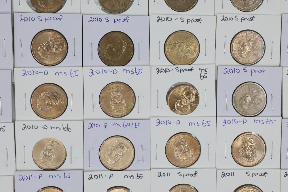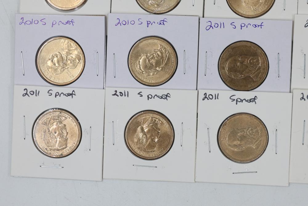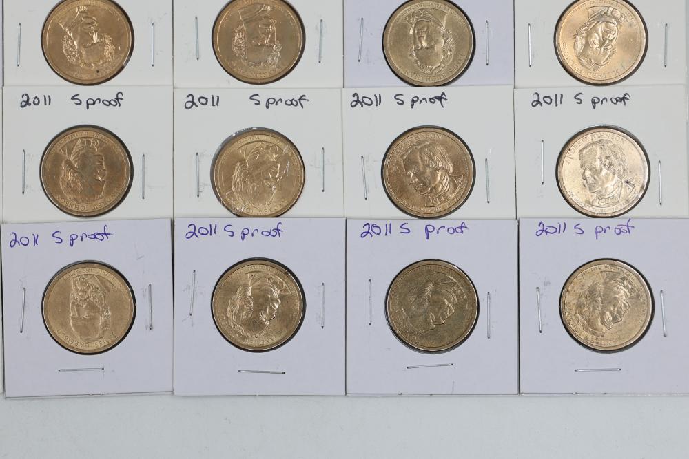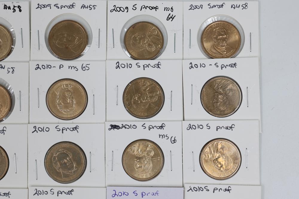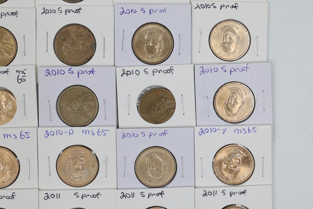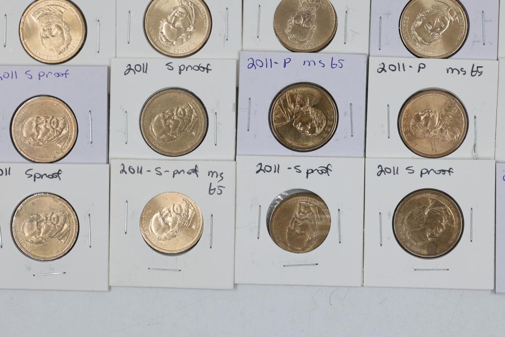 U.S. $1 Commemorative Presidential Dollars from years such as 2009, 2010, and 2011 in variable conditions. 80 coins in total.