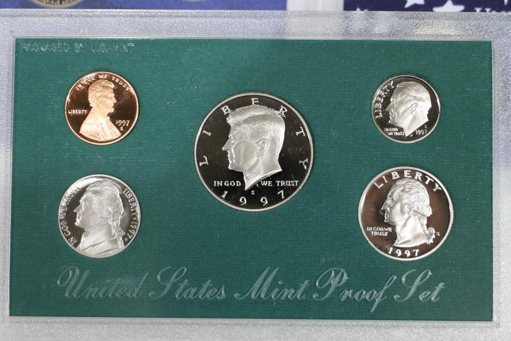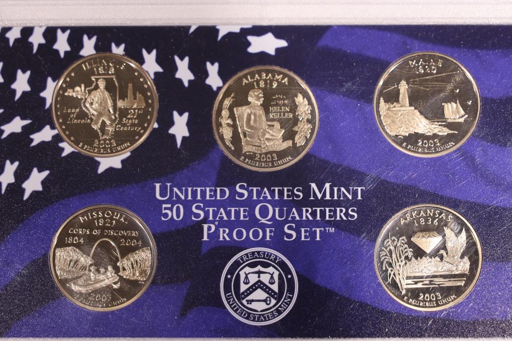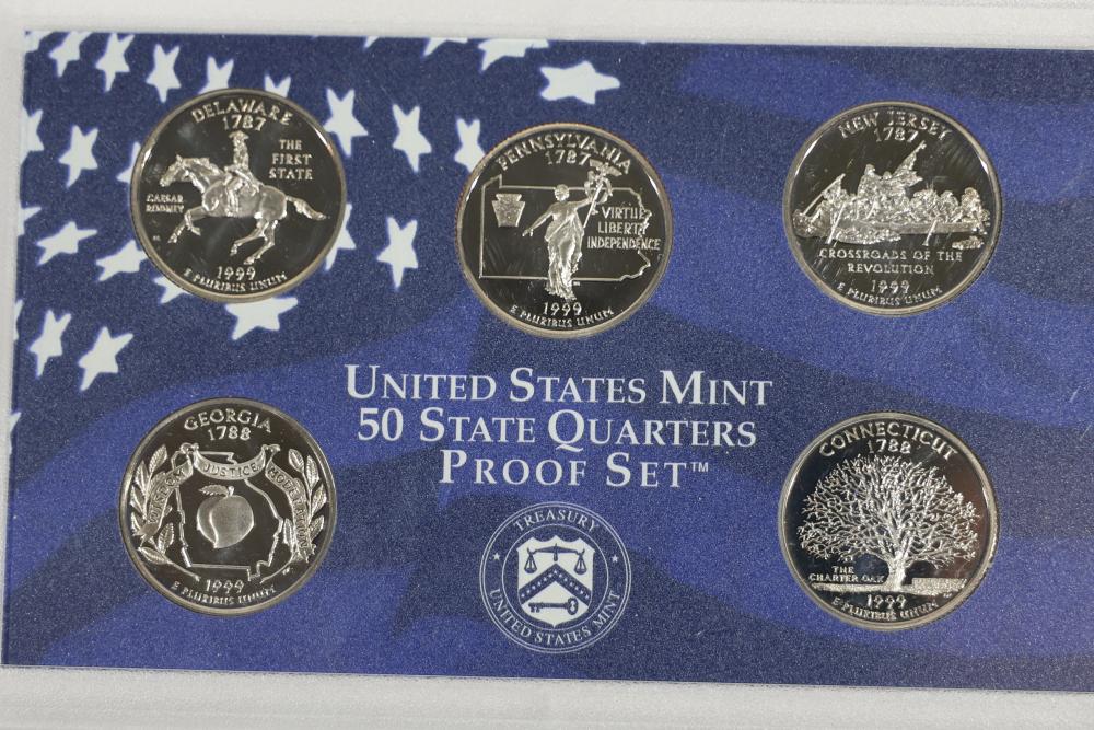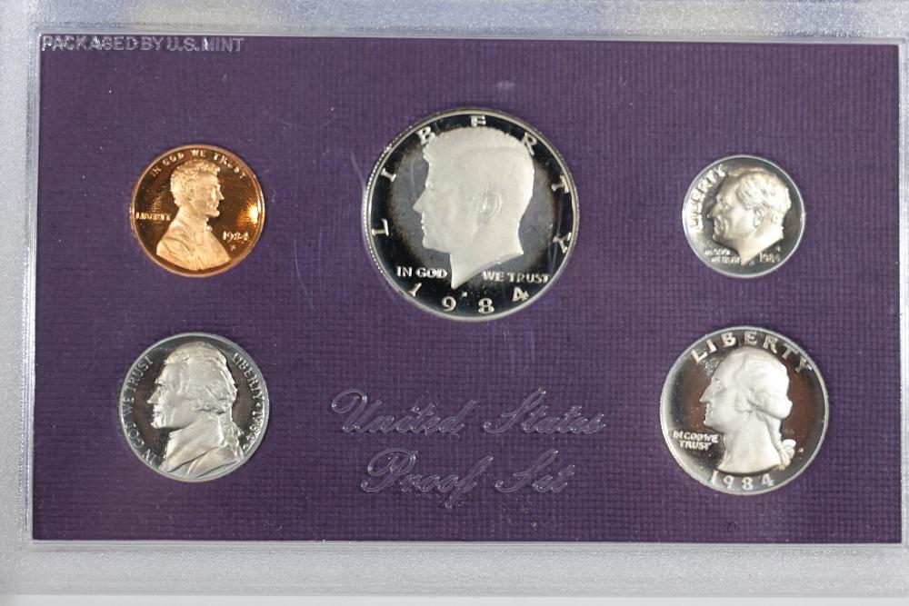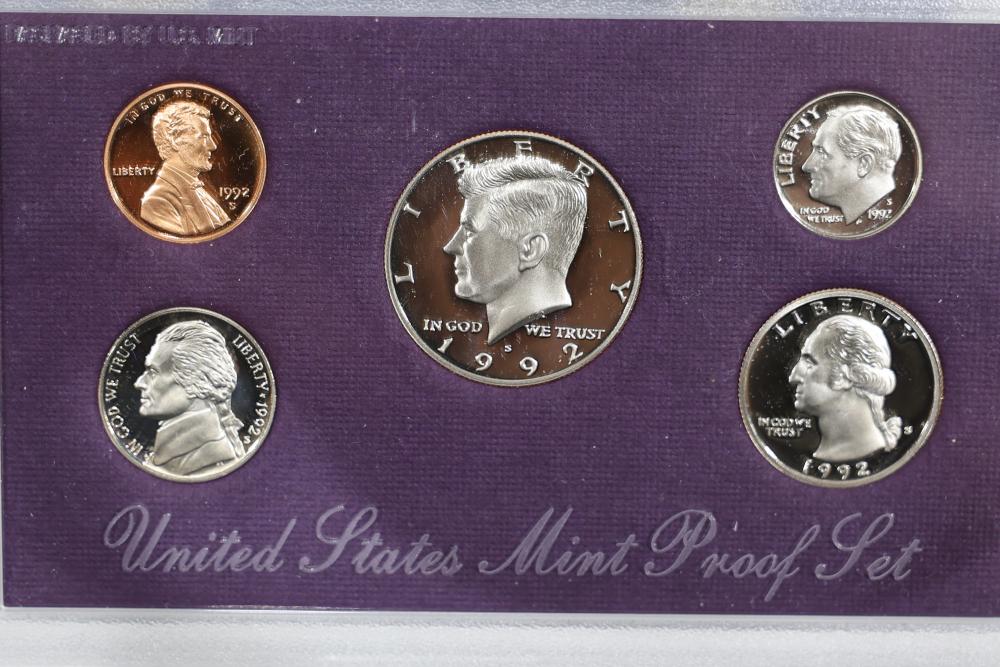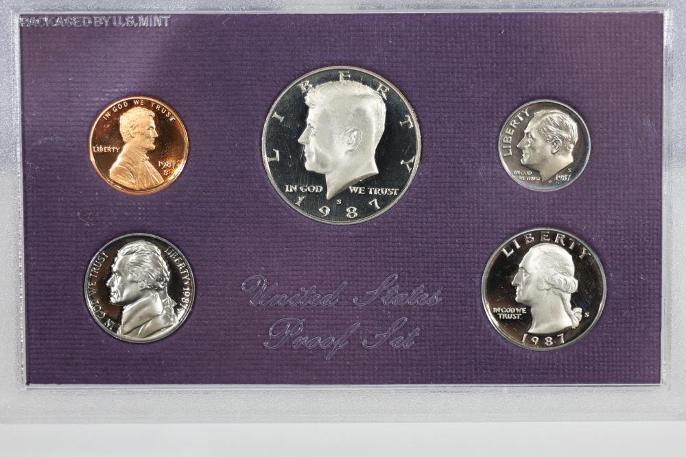 Items include S proof coin sets 1968-1982 with Eisenhower Dollars; 14k marked gold ring with diamond stone; 14k marked gold Pegasus pin; 14k rose gold bracelet with small diamonds; 1892 Liberty Head gold coin; sterling silver goblets/napkin ring set; Gorham Sterling candlesticks; US $1 Presidential Dollars & Susan B Anthony $1 coins; 1887 Morgan Silver Dollar NGC MS 64 graded coin; sterling silver flatware/serving utensils; 1983-1999 & 2003 United States Mint proof sets; Silverplate Porringer with Spanish inscription decorative handle; Bulova/Sears/Timex vintage watches; certified foreign coins/currency; State quarters in M565 holders; U.S. Dimes graded M565 & more. Items are located in Pleasant Valley, NY.
