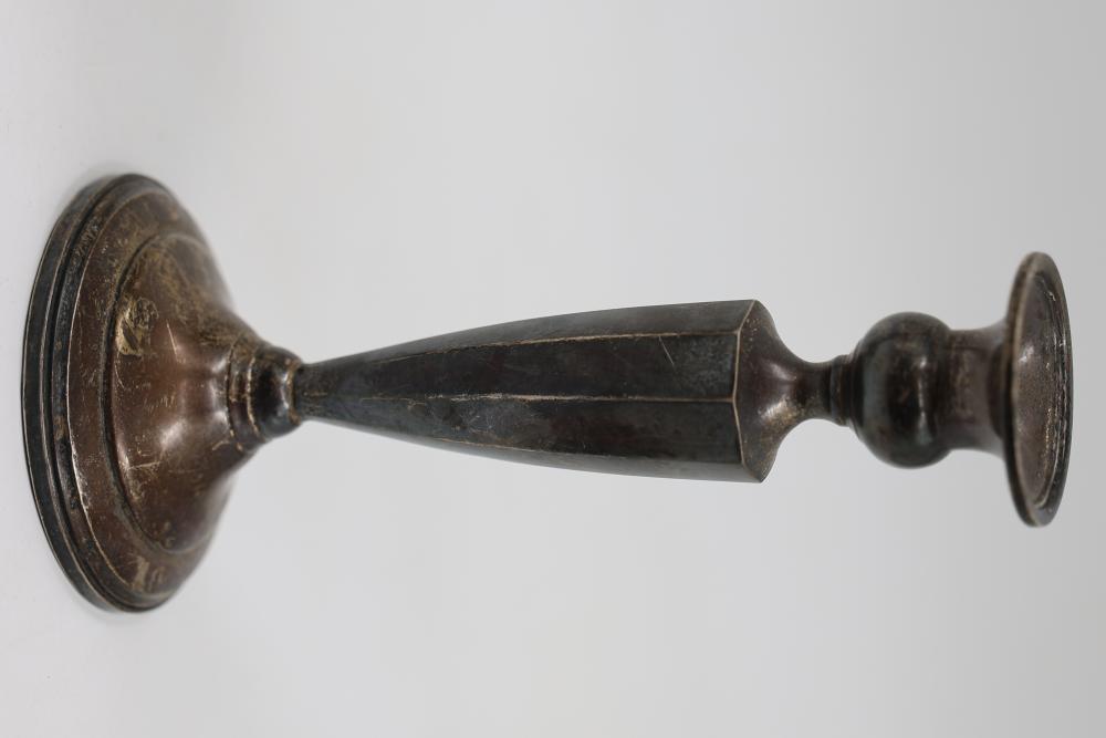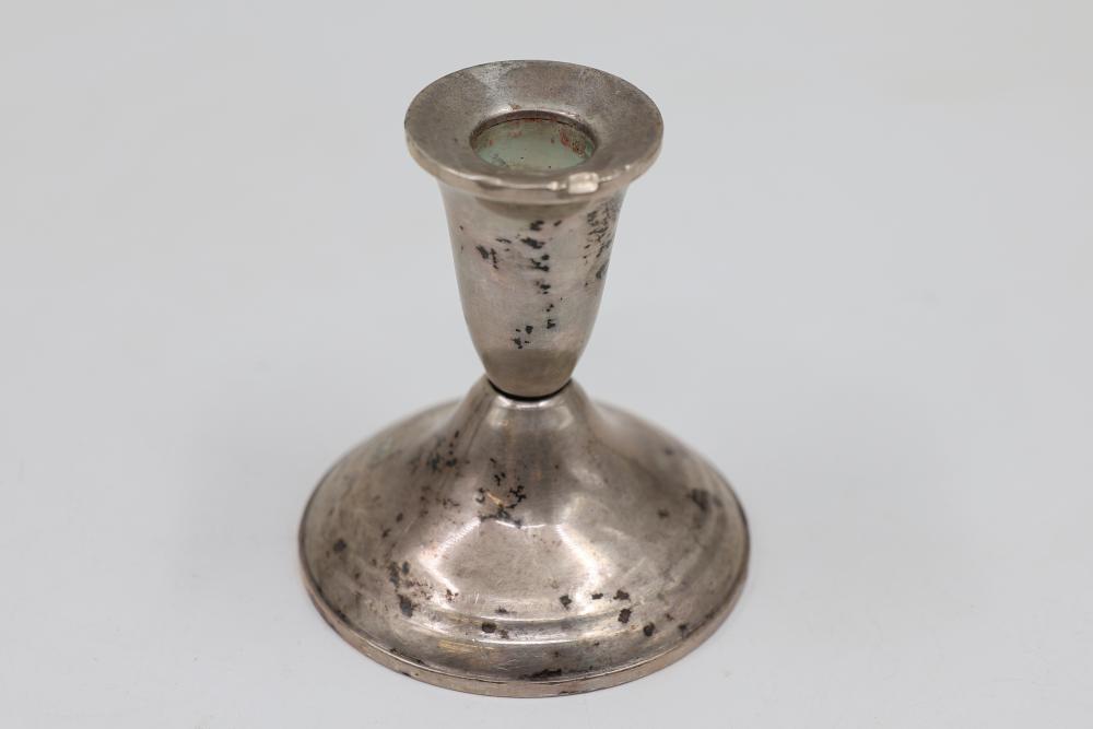 Three Sterling Silver Candlesticks in Assorted Styles. Includes two matching candlesticks with an octagonal faceted design and one smaller candlestick with a smooth finish. Each is constructed of sterling silver with reinforced bases as Stamped. Total weight being 946 grams.