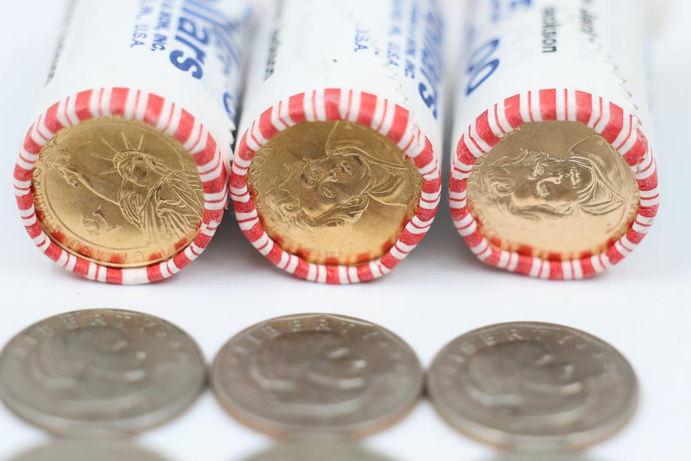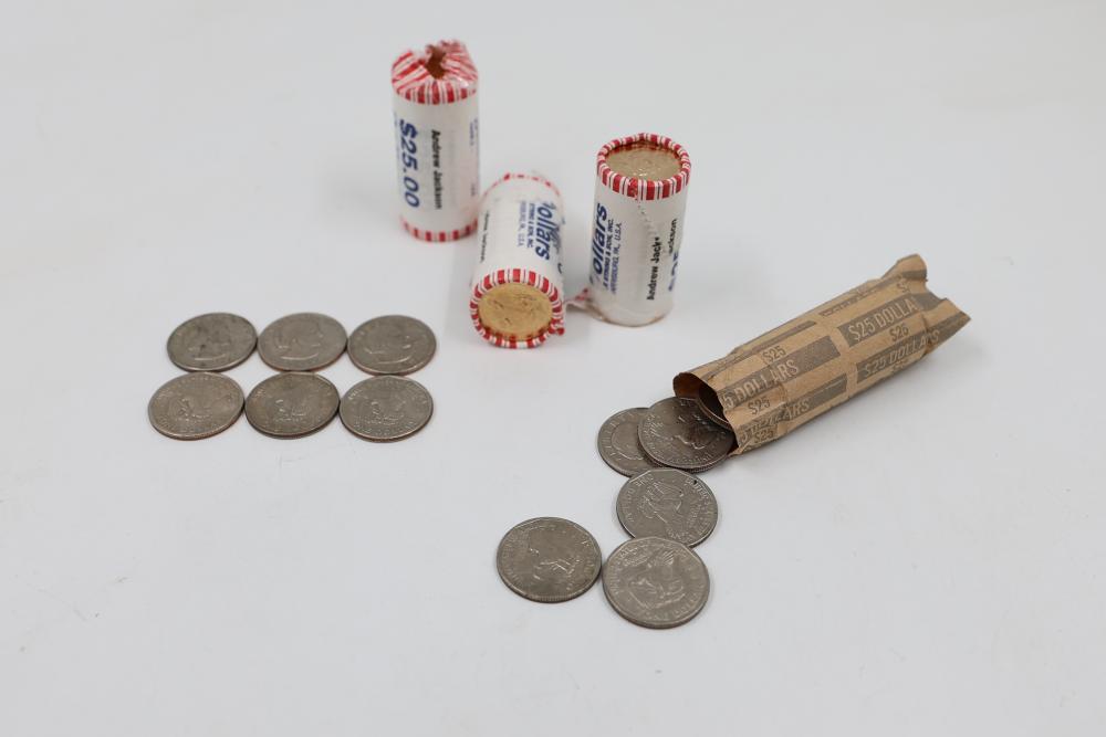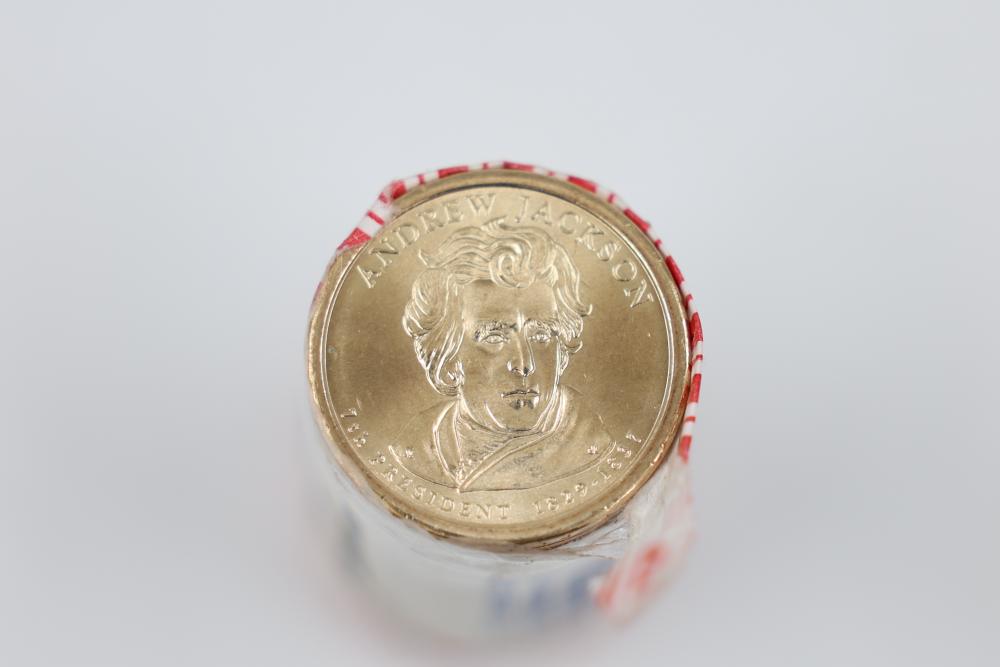 Four Rolls of Andrew Jackson Presidential $1 Dollar Coins and Susan B. Anthony $1 Dollar Coins.