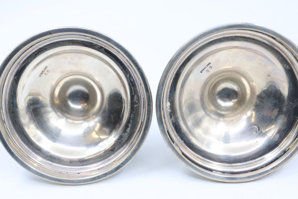 Sterling Decorative Candlesticks stamped Sterling 50 on bottom. Total weight being 342 grams.