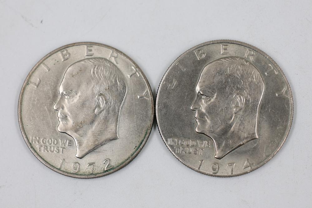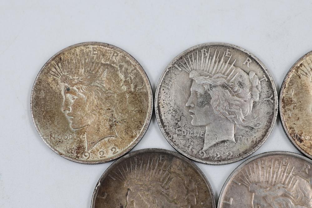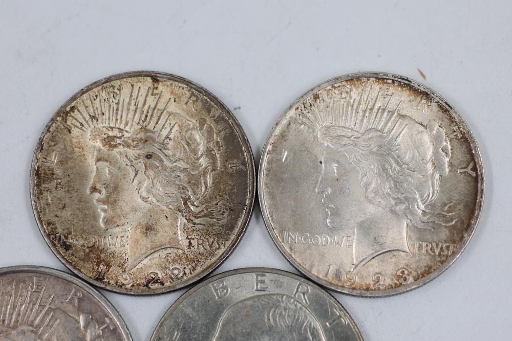U.S. $1 Peace and Eisenhower Dollars from the years 1922, 1923, 1924, 1972, 1974, and 1976.