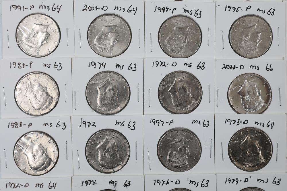 Items include S proof coin sets 1968-1982 with Eisenhower Dollars; 14k marked gold ring with diamond stone; 14k marked gold Pegasus pin; 14k rose gold bracelet with small diamonds; 1892 Liberty Head gold coin; sterling silver goblets/napkin ring set; Gorham Sterling candlesticks; US $1 Presidential Dollars & Susan B Anthony $1 coins; 1887 Morgan Silver Dollar NGC MS 64 graded coin; sterling silver flatware/serving utensils; 1983-1999 & 2003 United States Mint proof sets; Silverplate Porringer with Spanish inscription decorative handle; Bulova/Sears/Timex vintage watches; certified foreign coins/currency; State quarters in M565 holders; U.S. Dimes graded M565 & more. Items are located in Pleasant Valley, NY.
