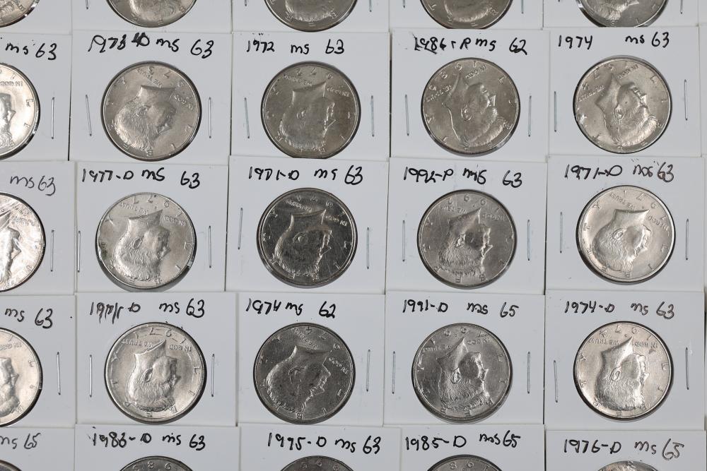 U.S. 50c Kennedy Half Dollars with years including 1971, 1972, 1973, 1974, 1976, 1980, 1988, 1990, 1993, 1995, 1997, 2000, and 2022. Conditions are variable. 201 coins in total.