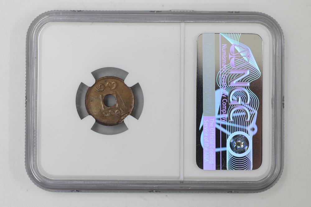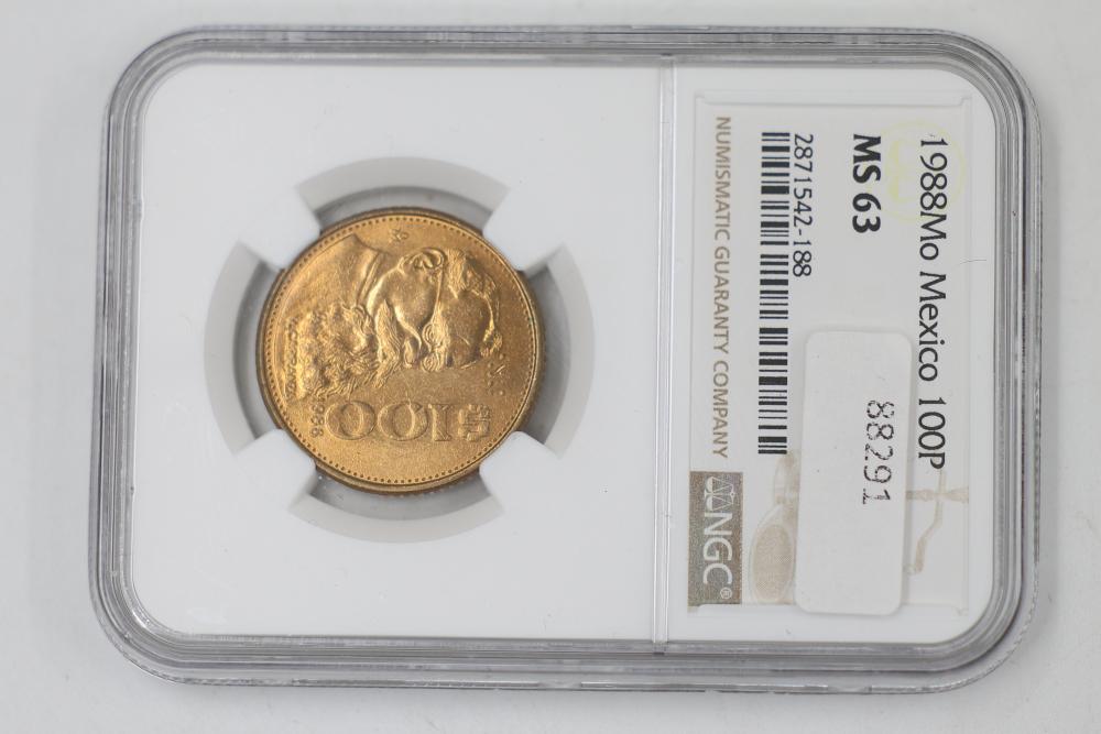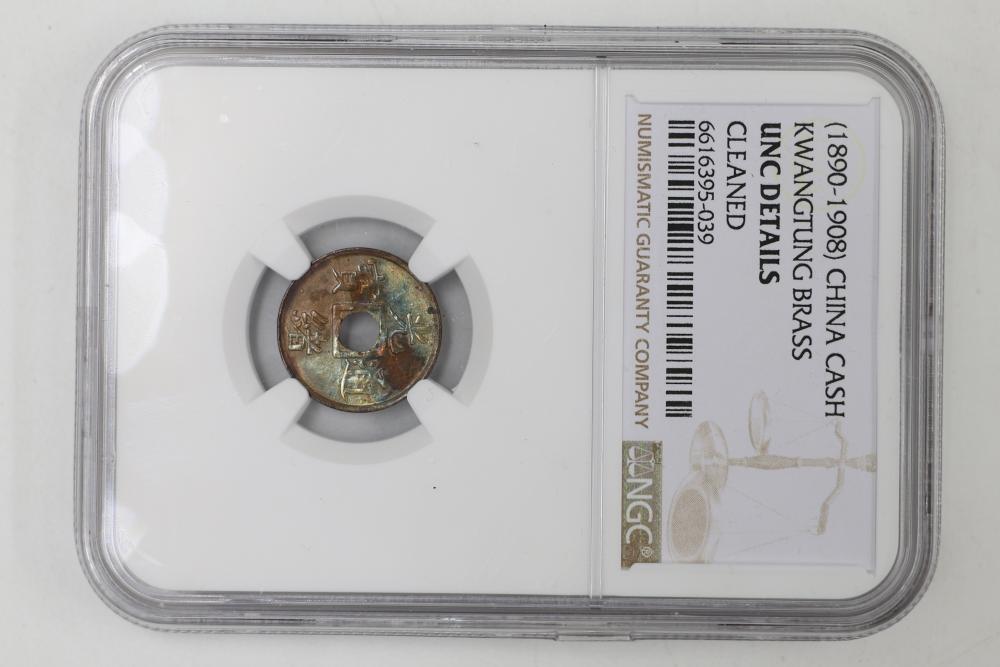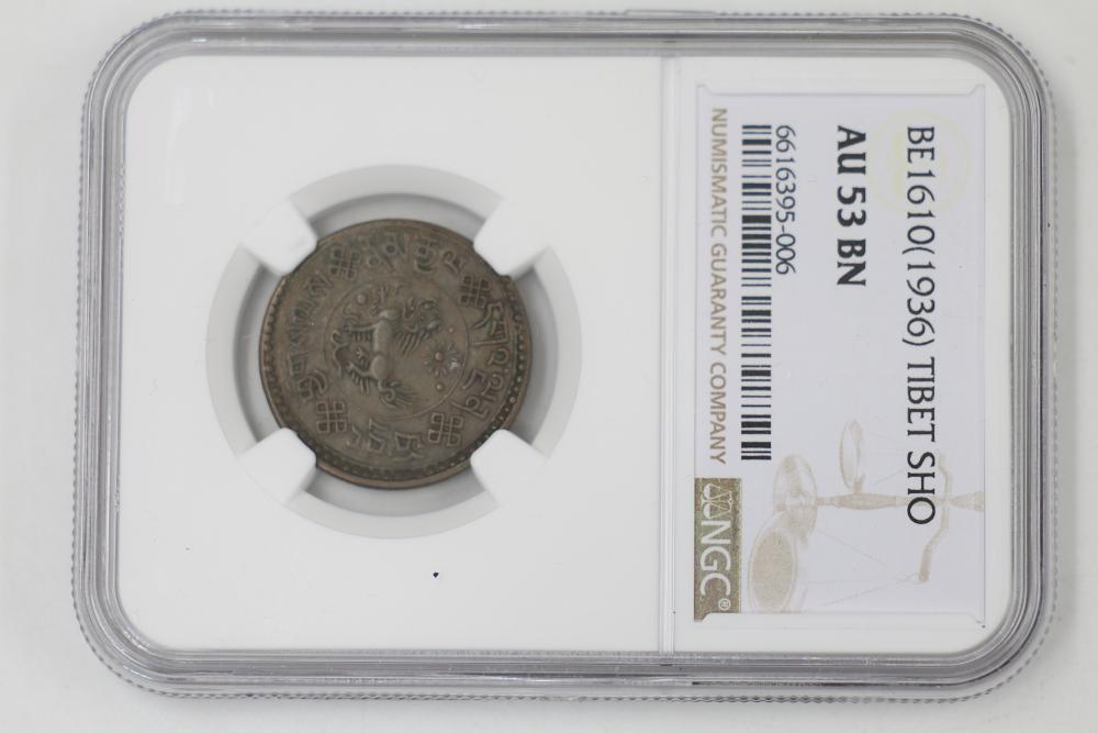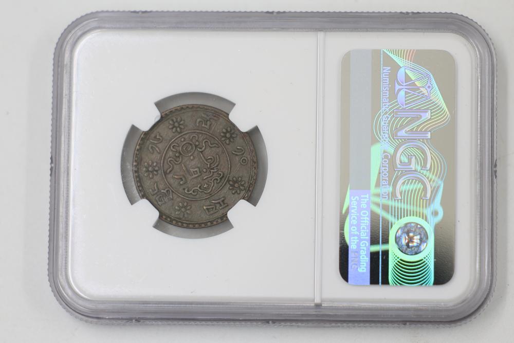 Foreign Coins and Currency including 1943 India 1/2 Anna and 1918 Russian Banknotes, coins from China, India, Mexico, and Tibet graded by NGC in protective holders. Conditions are variable.