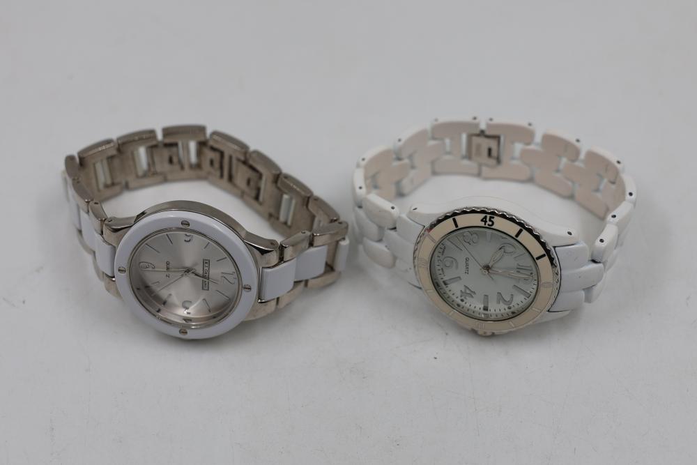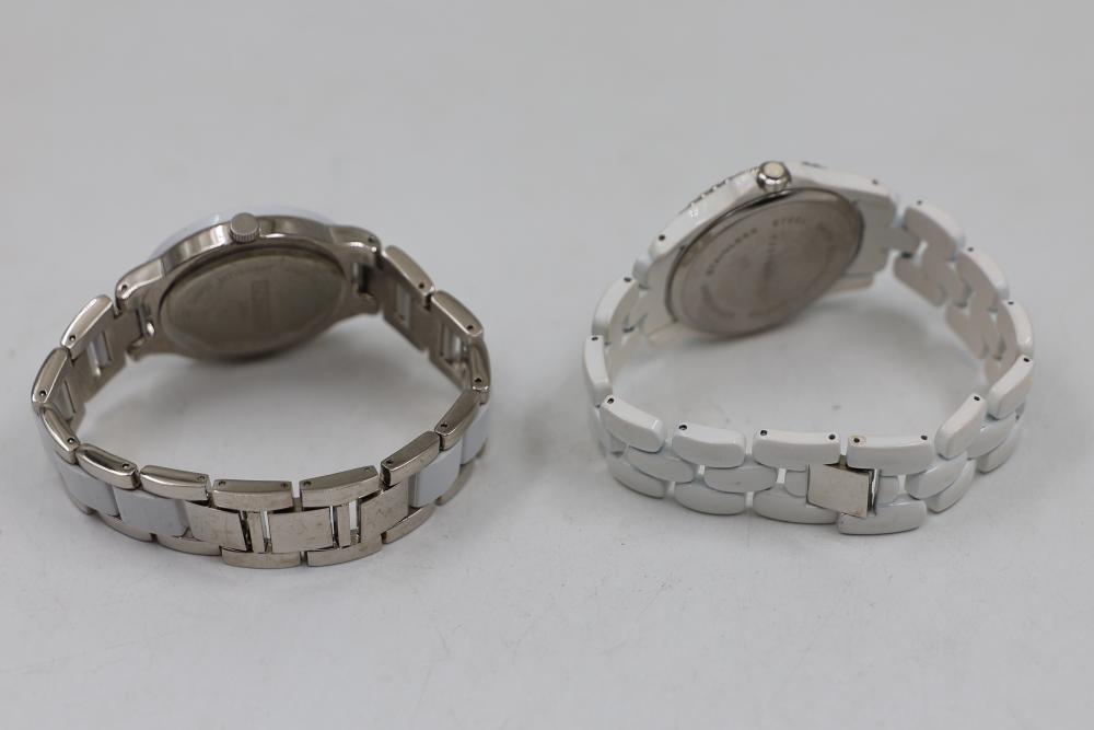Two Metal Wrist Watches, one marked "R.J. Graziano B9955", with quartz movement and stainless steel back.
