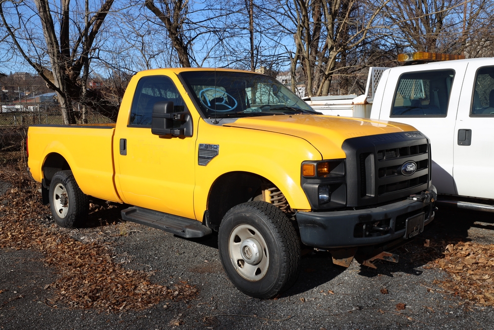 2008 Ford F350 Crew cab W/Utility body & DRW. VIN: 1FDWW37RX8EC52122. Odometer reading: 130659. Seller reports: Age, condition & high mileage, Body rusted/damaged, Weak engine and transmission, Parts missing, Weak/dead 12 volt battery, Diesel Engine: 6.4 L / V8, Key and Title available. Fleet #: 128360.
