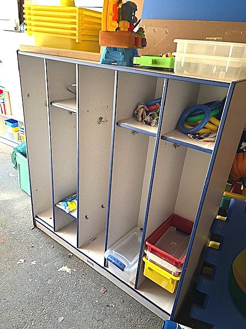 Items include fridge; outdoor playscape (apart); boxes with office items, kitchen items, and toys; Sterilite cabinet 35" x 25" with cots. Also, boxes with daycare items; sensory Little Tikes plastic kitchen 44" x 42"; stroller; Sterilite cabinet. The cabinet contains CD player and play clothes. Also, twelve cots 50" x 23"; boxes of play toys and books; six cots 50" x 23"; outdoor playscape (apart); thirteen chairs; new three-sided easel; assorted plastic chairs; table – legs are off, 60" x 30"; table – legs are off, 72" x 30"; eight-seat kidney toddler feeding table – legs are off, 77.5" x 44". Plastic seat inserts not shown; natural wood cabinet with toys and other items 48" x 19"; three-seat toddler feeding table – legs are off, 48" x 30"; octagonal table 48" with legs underneath; high chair with removable tray; new in box, Colorations three-way acrylic panel easel 23" x 39" x 47"; natural wood cabinet for books 48" x 22.5"; storage container with bag of soccer balls and holiday items; baby changing table 32.5" x 21" with plastic storage container containing first aid items and other supplies; fine motor skills activity center; pop-up gazebo 10 x 10 feet; three outdoor water interactive tables; Little Tikes interactive kitchen 44" x 13"; Hewlett Packard desktop screen; bicycle helmets; plastic table 30.5" with wooden playhouse on top; two new Cosco Simple Fold high chairs; playhouse 47.5" x 41", by Guidecraft; new three-sided easel; assorted fine motor skill toys; slide; chairs; cabinet 20" x 15"; multiple Joni Craft cabinets in multiple sizes. The functionality of electric/electronic items are unknown. Authenticity is not checked nor guaranteed on any & all items. Pickup is by appointment only to gain initial access & clean out must be completed by Sunday, March 22 at 5PM. PICKUP NOTE: The high bidder must clean/take all & leave nothing in the garages or on the property by Sunday, March 22 at 8PM. The garages must be broom swept clean. Any dumpsters on the property are for use by the tenants only, not the public. Anything left in the garages after Sunday, March 8 at 5PM will be deemed abandoned & all cleanup costs will be the responsibility of the buyer with a minimum disposal fee of $300. Due to security reasons the pickup location will only be given to the winning bidders. There is no physical inspection available for this auction. Items are located in Manchester, CT.