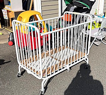 Contents of a 19' x 12' garages being sold by the garage's owner. Items are being liquidated from a closed daycare. Contents include ten foldable cribs with eight posture boards 39.5" x 24" x 24.5". multiple Joni Craft cabinets & lockers in multple sizes; posture boards 38" x 22.5", a few mattresses included; wooden rolling storage cart; two round exersaucers called baby activity; blue & white Joni Craft five sectional locker 48" x 50"; plastic Sterilite cabinet 35" x 25" with books; four Little Tikes tricycles; easel; four Little Tikes cozy ride cars; blue & white four-seater stroller; two red tricycles, steel construction; grey & black B.O.B. two-seater stroller; Bye Bye Buggy red six-seater stroller – wheel is off; light blue six-seater stroller; wooden four-corner table 36" across; metal bottom to table unattached; four yellow wooden chairs; wooden sensory play kitchen by Joni Craft 20" x 15"; red & natural wood sensory table with fall items, 45" x 20"; Graco black & lime green two-seater stroller; additional outside cars and toys; two Graco baby rockers; four Graco Ingenuity high chairs, open cabinet – side is off; Joni Craft five-section locker, 48" x 65". On top is natural wood five-section cubby, includes items; Joni Craft red & white cabinet 48" – boxes in picture not included; yellow metal tricycle; black Chicco double stroller; round wooden table with blue band, 48" across – leg is off but attachable plus more. The functionality of electric/electronic items are unknown. Authenticity is not checked nor guaranteed on any & all items. Pickup is by appointment only to gain initial access & clean out must be completed by Sunday, March 22 at 5PM. PICKUP NOTE: The high bidder must clean/take all & leave nothing in the garages or on the property by Sunday, March22 at 8PM. The garages must be broom swept clean. Any dumpsters on the property are for use by the tenants only, not the public. Anything left in the garages after Sunday, March 8 at 5PM will be deemed abandoned & all cleanup costs will be the responsibility of the buyer with a minimum disposal fee of $300. Due to security reasons the pickup location will only be given to the winning bidders. There is no physical inspection available for this auction. Items are located in Manchester, CT.