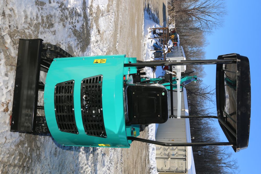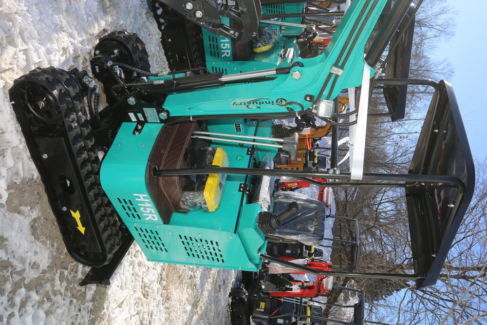 New 2026 CFG Industrial gas powered mini Excavator model H15R with 420cc gasoline engine, bucket, 4' long tracks, 38.5" wide base, 6" wide tracks, canopy, hydraulic boom & bucket controls, pilot system, thumb, dozer blade. Hours reading less than 1 hour.