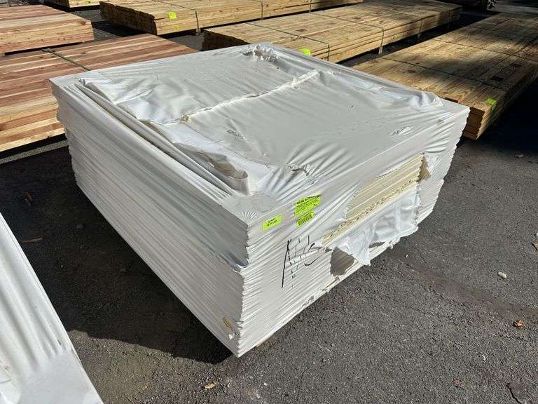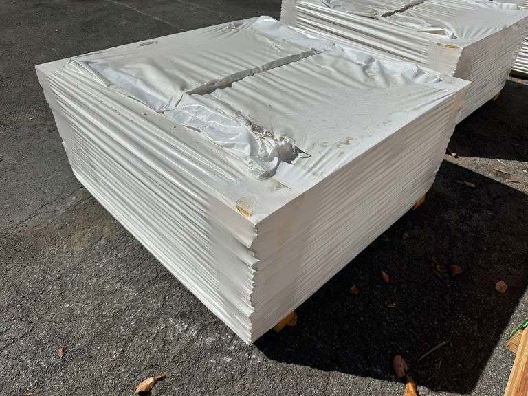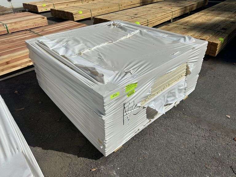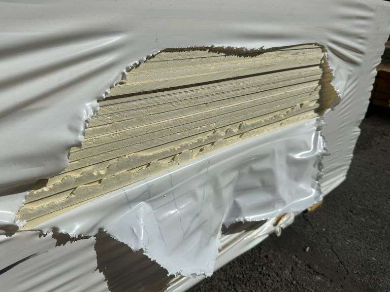 GAF Sheeted Insulation Brand Poly Iso Insulation, measuring 1/2 inch by 4 feet by 4 feet. Includes 48 sheets per unit as indicated on the label. The insulation material is wrapped in protective covering, though some tearing in the wrap is evident, exposing the material beneath. Offered as-is and suitable for insulation applications. Pickup only.