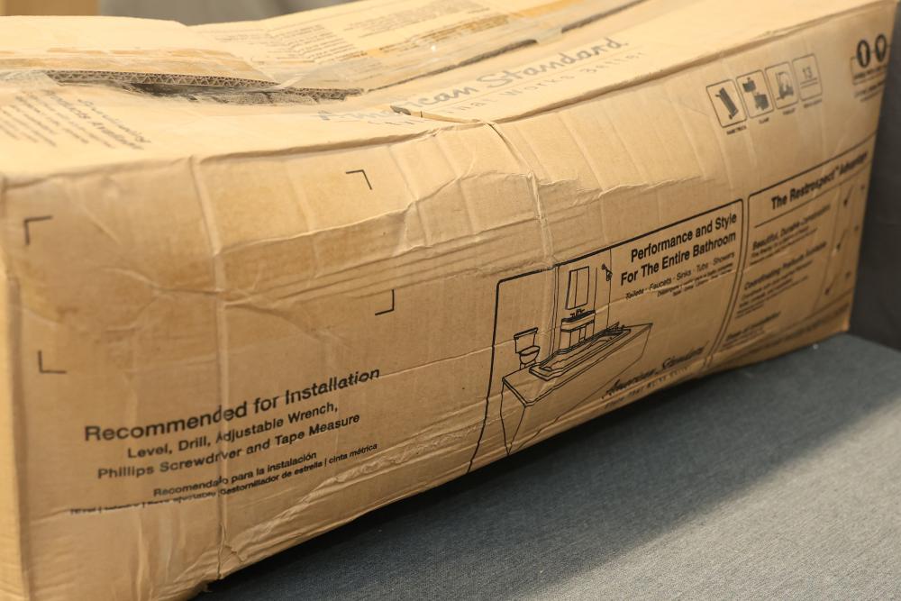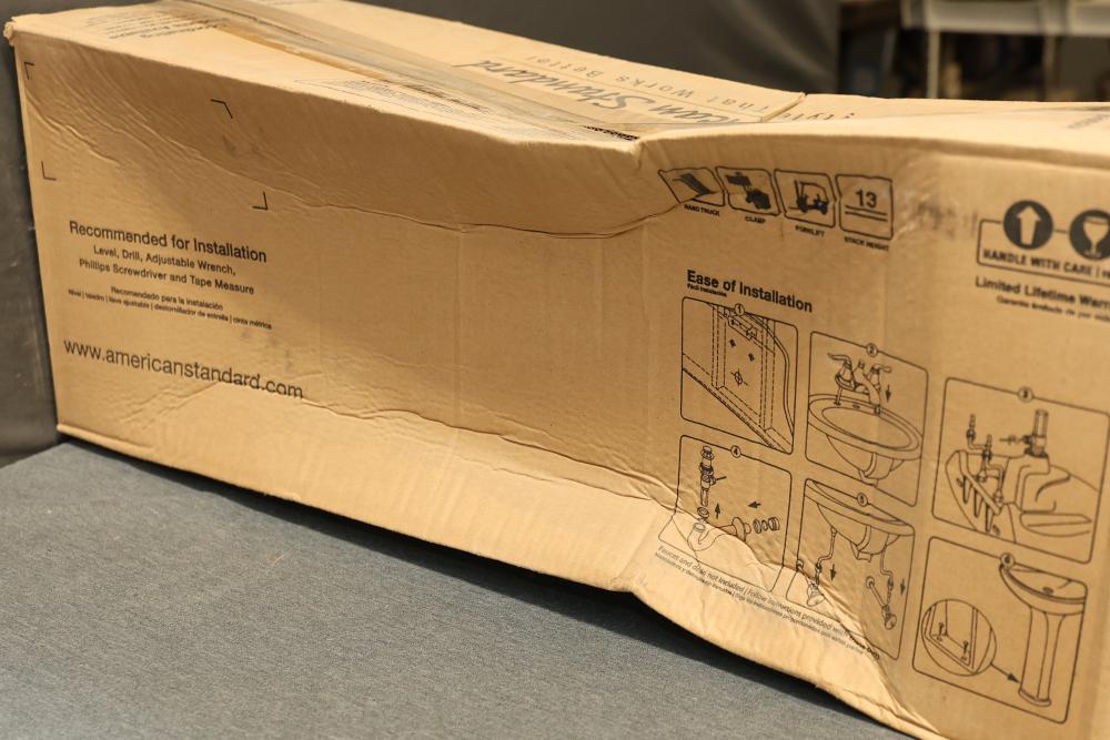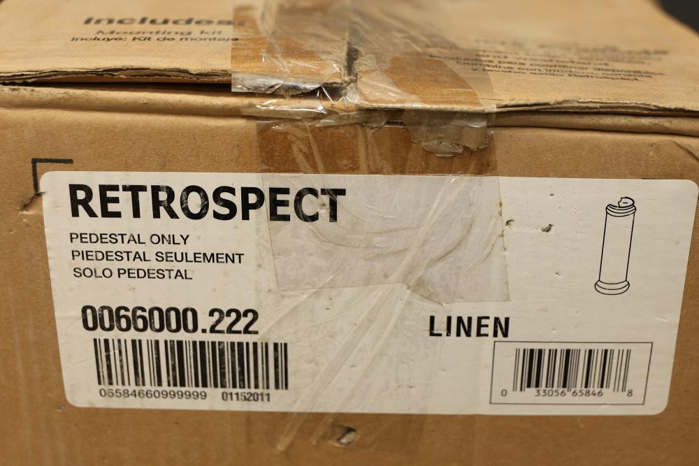 American Standard Retrospect Fireclay Traditional Linen Pedestal Sink Base, Measuring 28.25 Inches High, 9.875 Inches Wide, and 9.875 Inches Deep. Mounting Kit is not included. (Model 0066000.222). Pickup only.