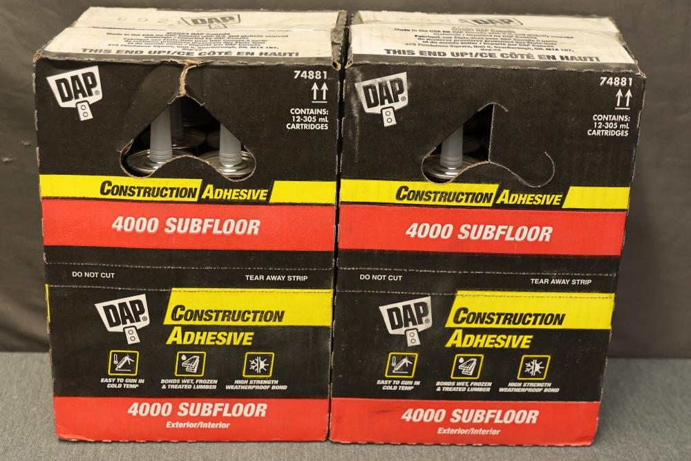 DAP 4000 Subfloor Construction Adhesive, Tan, 305 mL Cartridges - 2 cases with 12 cartridges each. Each case contains a total of 12 cartridges, designed for subfloor construction applications. Pickup only.