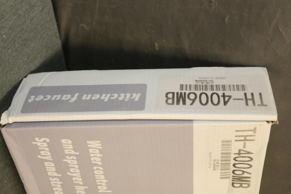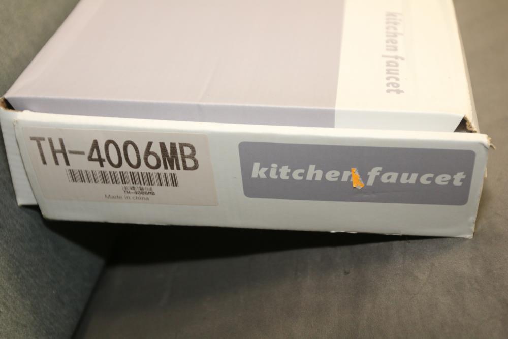Home Depot Single-Handle Pull-Out Sprayer Kitchen Faucet in Matte Black (Model YBX-TH4006MB). This faucet features a pull-out sprayer with spray and stream functions, a matte black finish, and a single-handle water control design. Includes installation components and instructions. Pickup only.