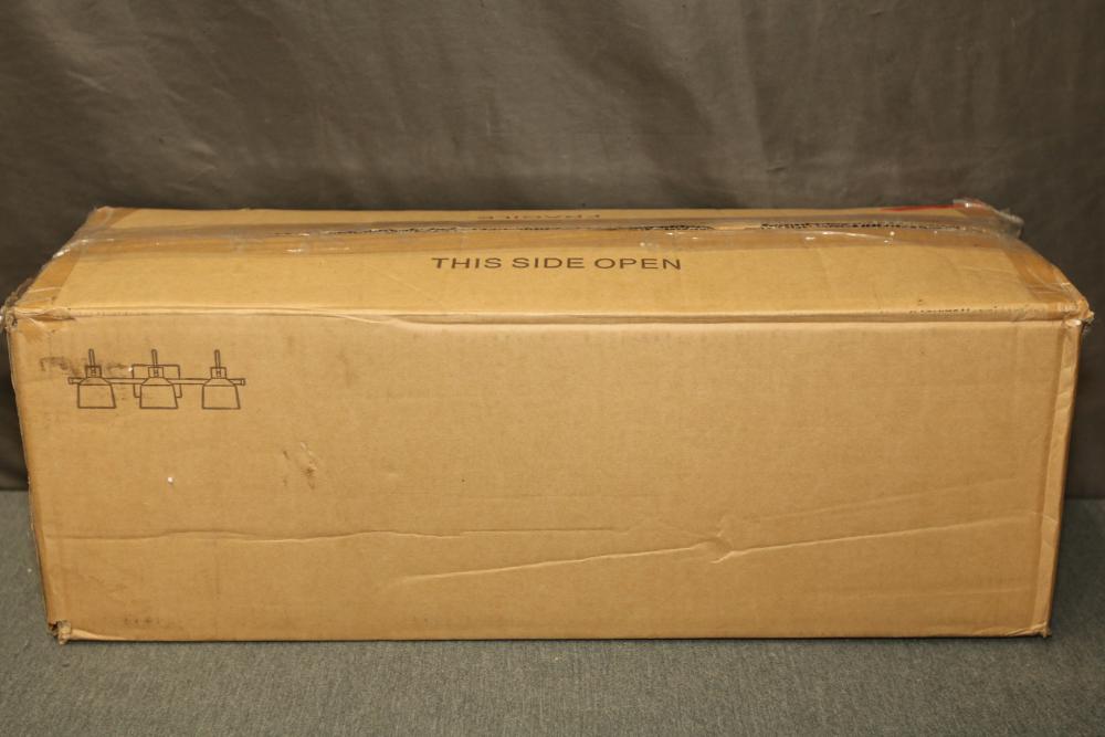 Uolfin 3-Light Black Modern Transitional Picture Wall Sconce, Gold Vanity Light with Metal Shades (Model 628U8FBNQUE4937). Features metal shades with a sleek two-tone black and gold design. Ideal for use as a vanity or picture wall sconce. The item is in its original packaging. Pickup only.