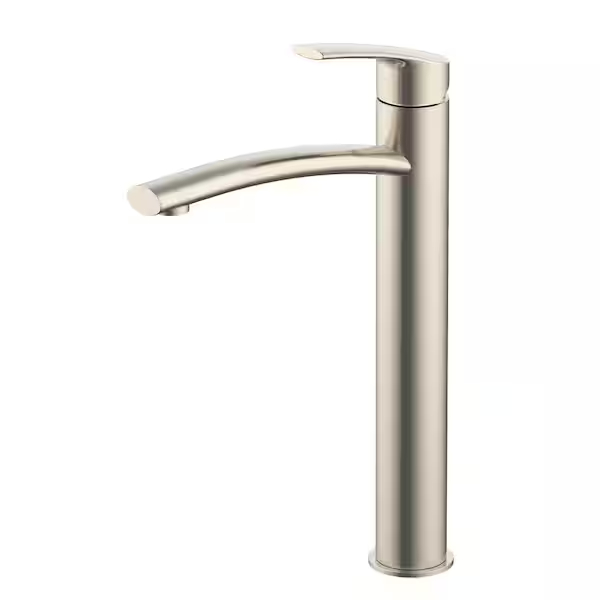 Glacier Bay Lynstone Vessel Faucet in Brushed Nickel Finish (Model HDQFS6A0300ND). The faucet features a sleek brushed nickel finish and is designed for vessel sinks. Included are installation components, an instruction manual, and the original packaging. Suitable for 1.2 gpm/4.5 l/min max water flow. Pickup only.
