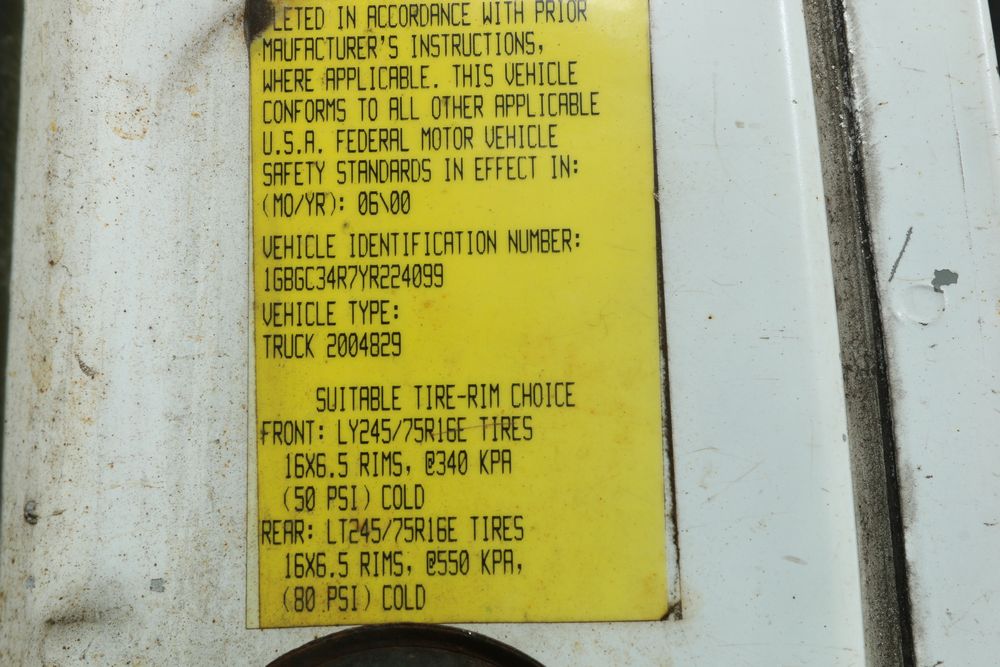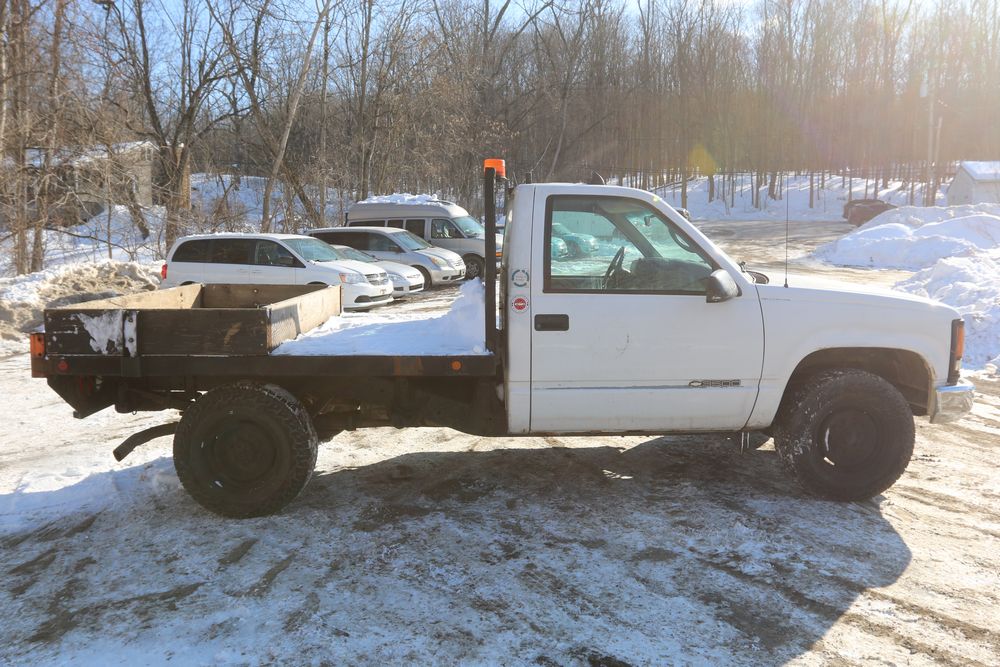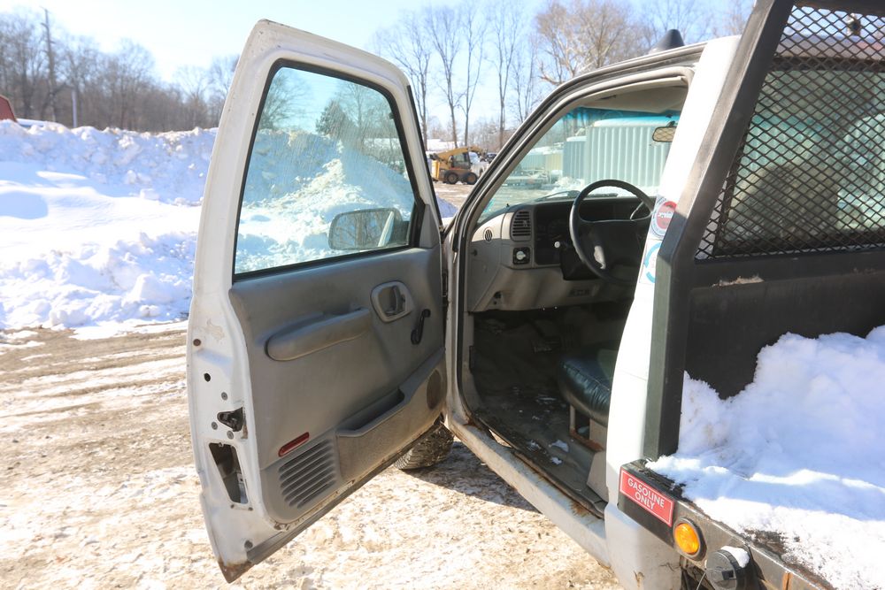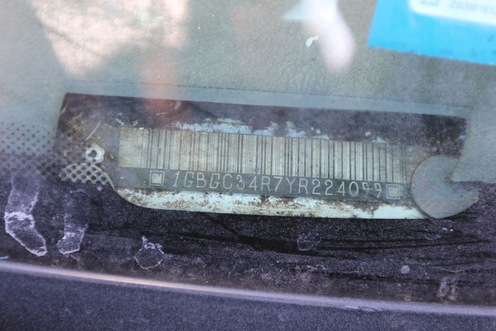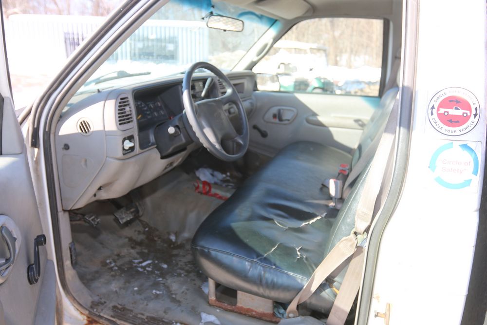 2000 Chevrolet C/K 3500 with a 5.7L V8 OHV 16V engine and 2WD, VIN - 1GBGC34R7YR224099, Odometer Reading: 122,175. Leather interior, mechanical windows/locks, AM/FM radio, heat, and caution light. Runs and drives. Keys, Title, and Bill of Sale available.