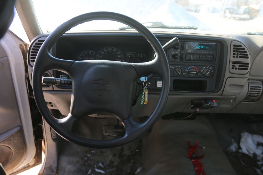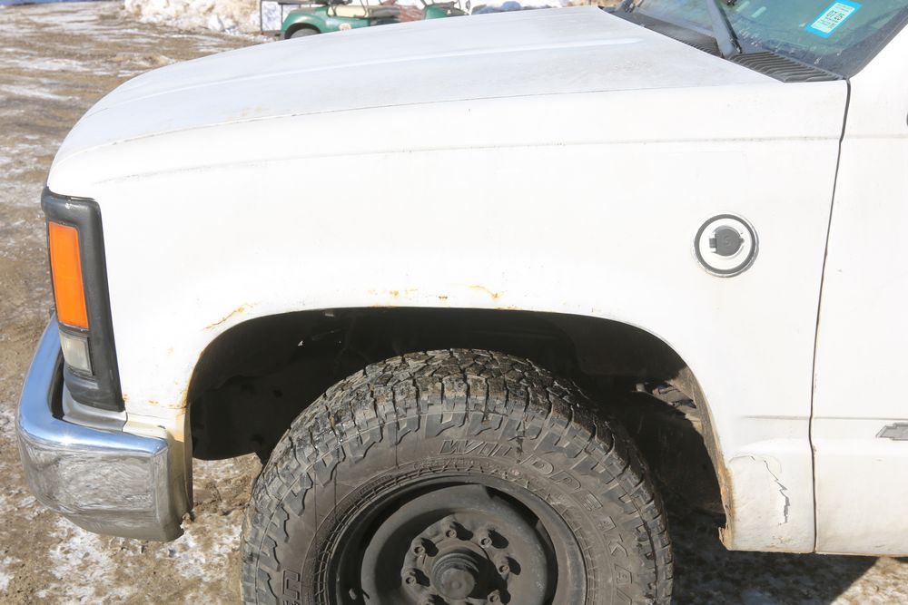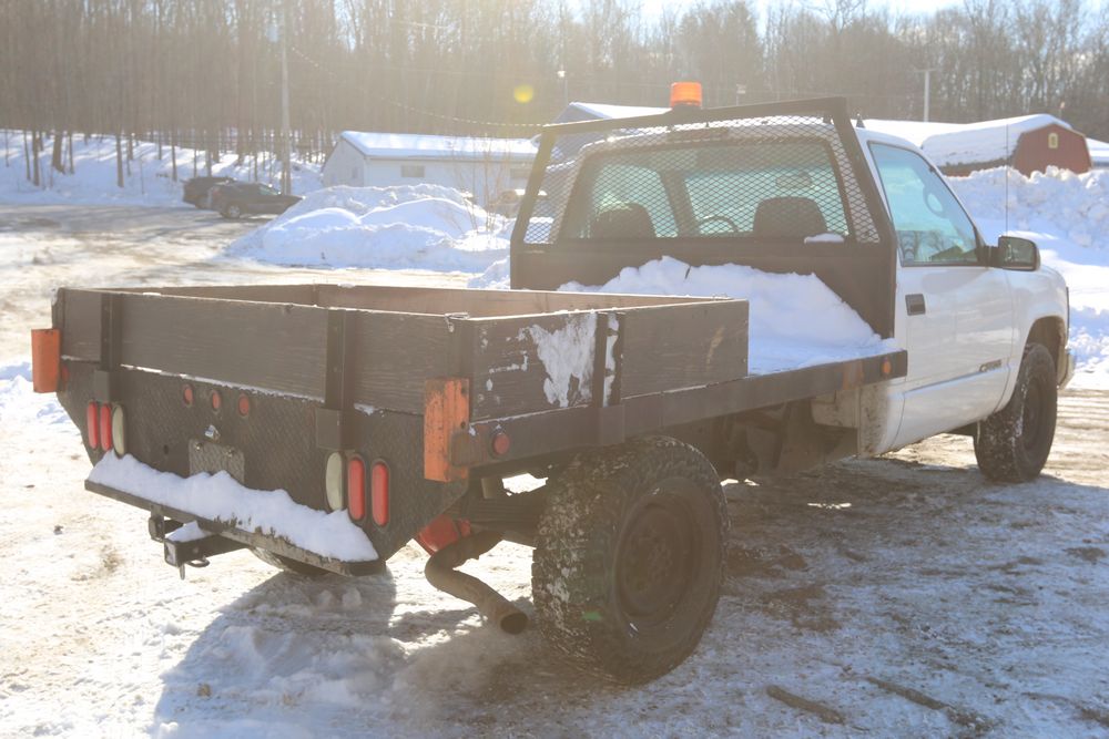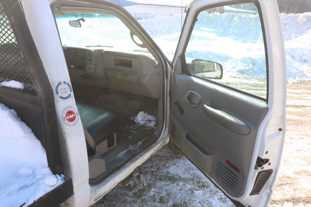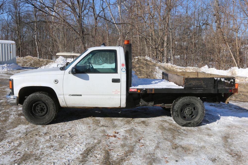 2000 Chevrolet C/K 3500 with a 5.7L V8 OHV 16V engine and 2WD, VIN - 1GBGC34R7YR224099, Odometer Reading: 122,175. Leather interior, mechanical windows/locks, AM/FM radio, heat, and caution light. Runs and drives. Keys, Title, and Bill of Sale available.