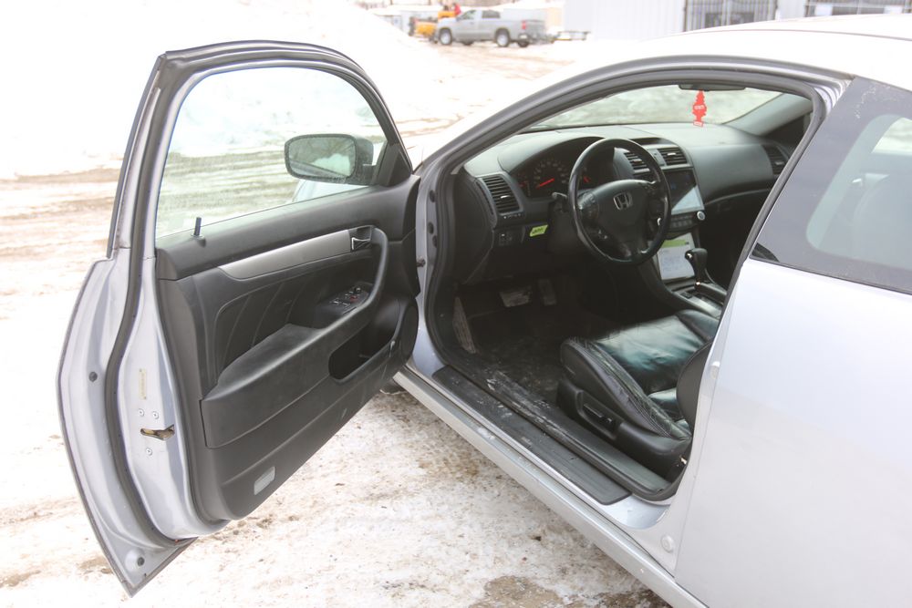 2004 Honda Accord EX V-6 Coupe AT FWD with a 3.0L V6 SOHC 24V engine, VIN - 1HGCM82764A012455, Odometer Reading: 223,098. Seller Reports: Has new power steering rack, new timing belt, new front and rear brake pads. Leather interior, power windows/locks/mirrors, touchscreen display with navigation, XM/AM/FM radio, and heat. Runs and drives. Keys, Title, and Bill Of Sale available.