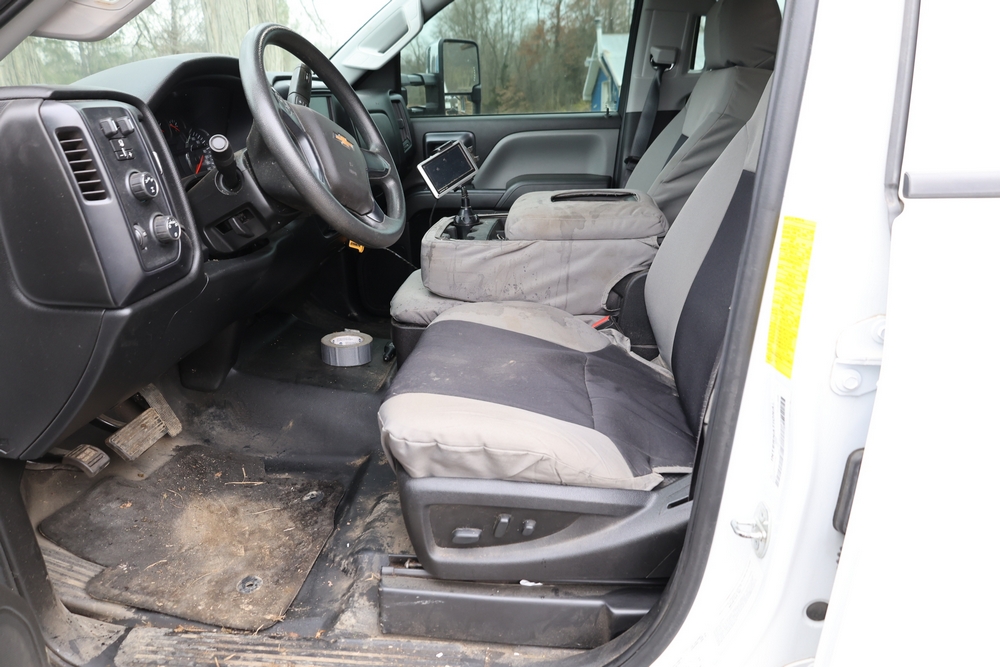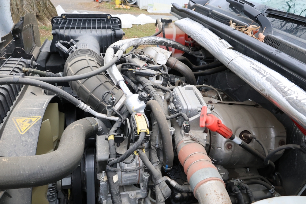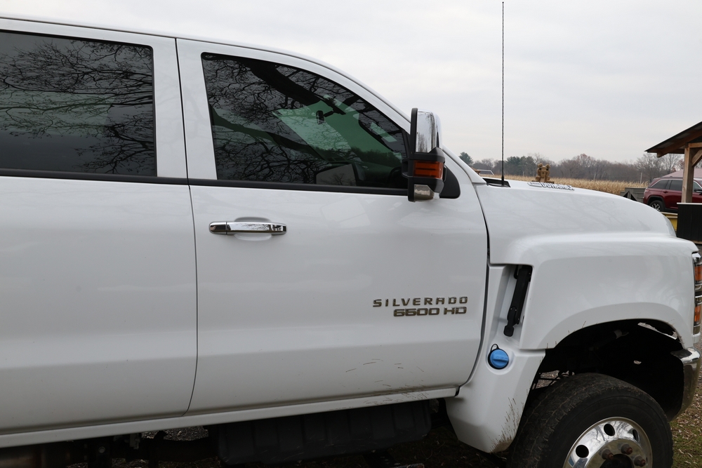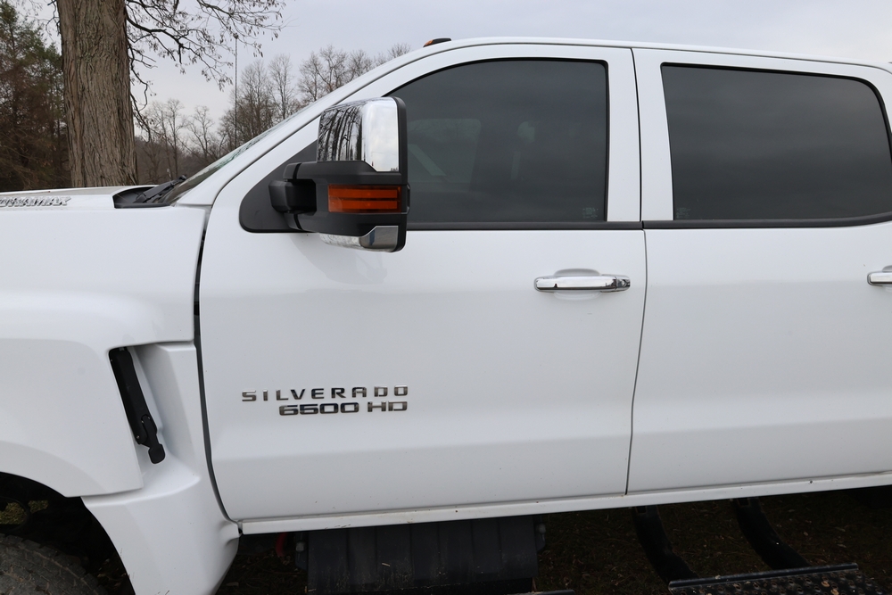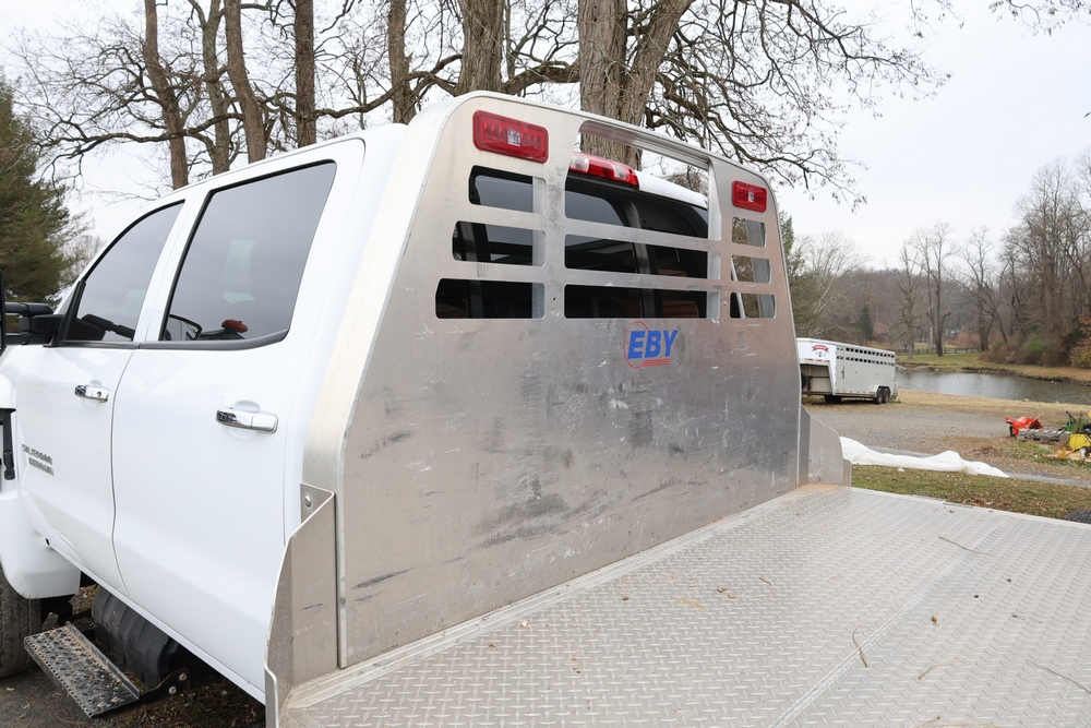 2022 International GM515 crew-cab flatbed truck. VIN: 1HTKJPVM6NH510164. Engine: 6.6L diesel, automatic transmission, 4WD. Odometer reading: 33617 miles. Features include dual rear wheels, aluminum Eby flatbed, running boards, touchscreen audio display. Runs and drives. Title and key available. NOTE: This item has a lien which will be satisfied upon payment for purchase in the auction. The vehicle(s) listed in this event will have the lien and title released upon payment directly to the secured creditor once paid for by the purchaser.