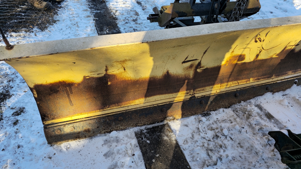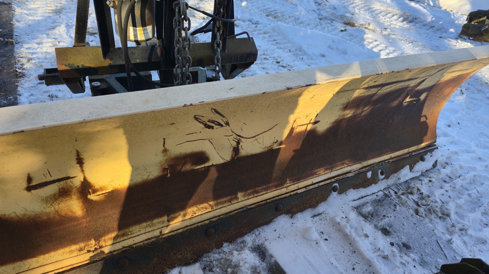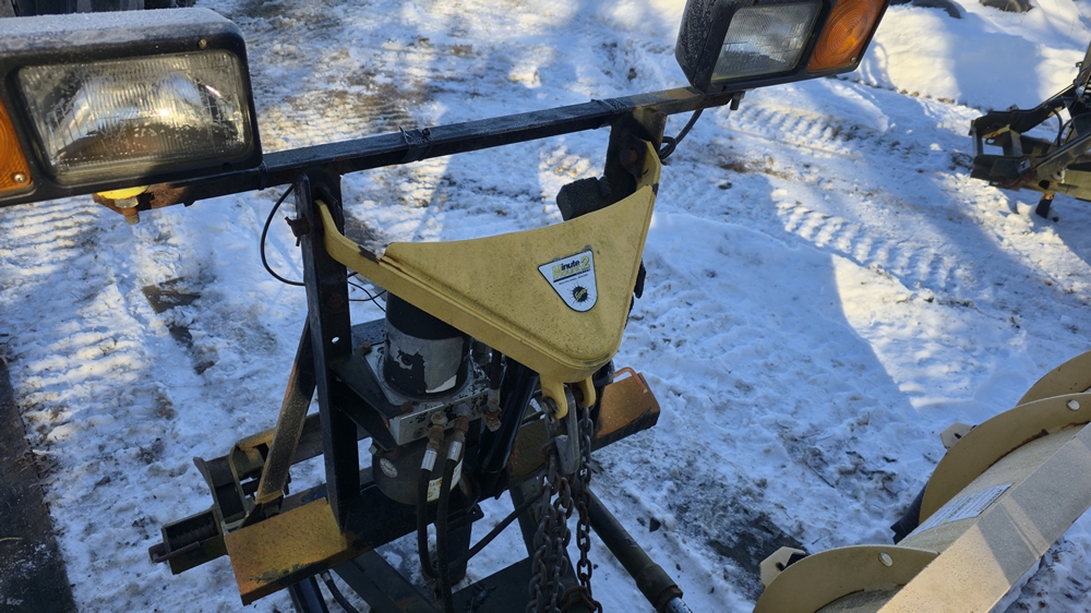 9' Storm Guard snow plow with Fisher Minute Mount 2 system. Includes hydraulic lift and angle assembly, quad trip springs, integrated headlights, controller not included.