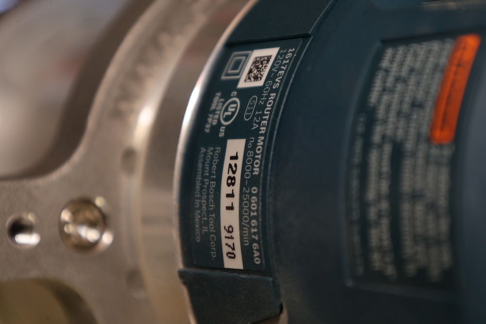 PantoRouter woodworking machine by WoodCraft Solutions LLC, equipped with a Bosch 1617EVS router motor, adjustable pantograph mechanism, aluminum work table, and clear safety guard, mounted on a benchtop base with the PantoRouter table assembly and controls. No equipment is onsite to assit loading. Bring the proper tools, equipment, and help needed to load your items.