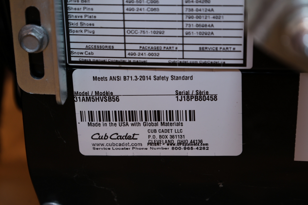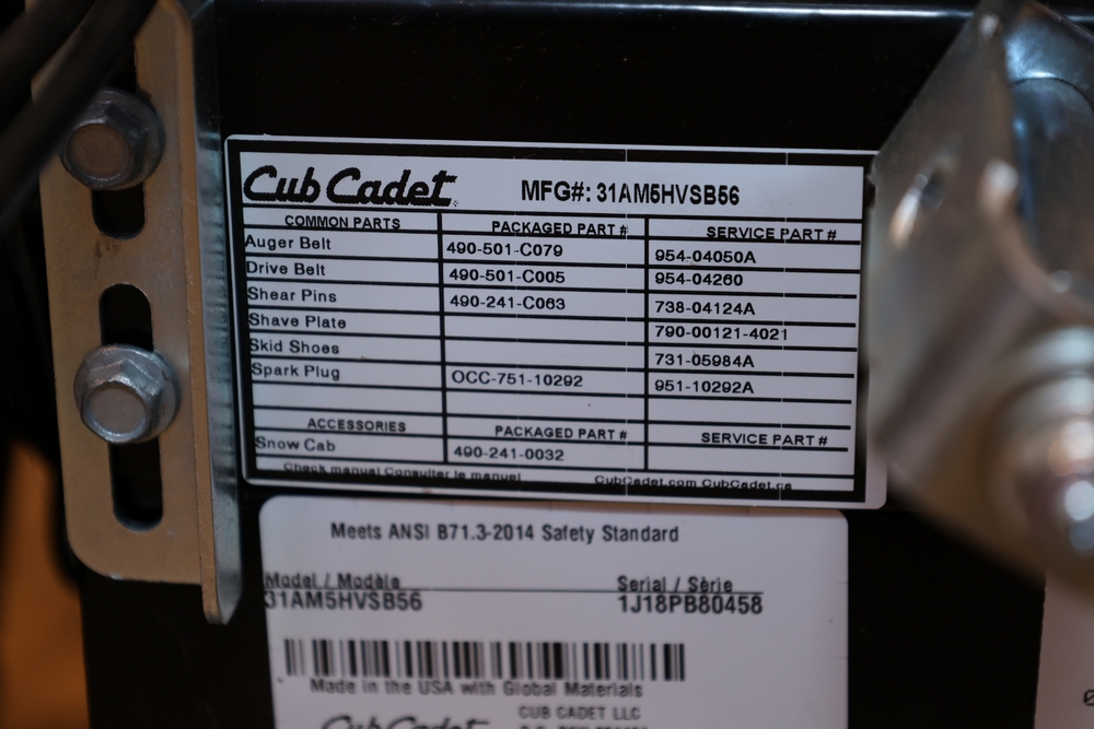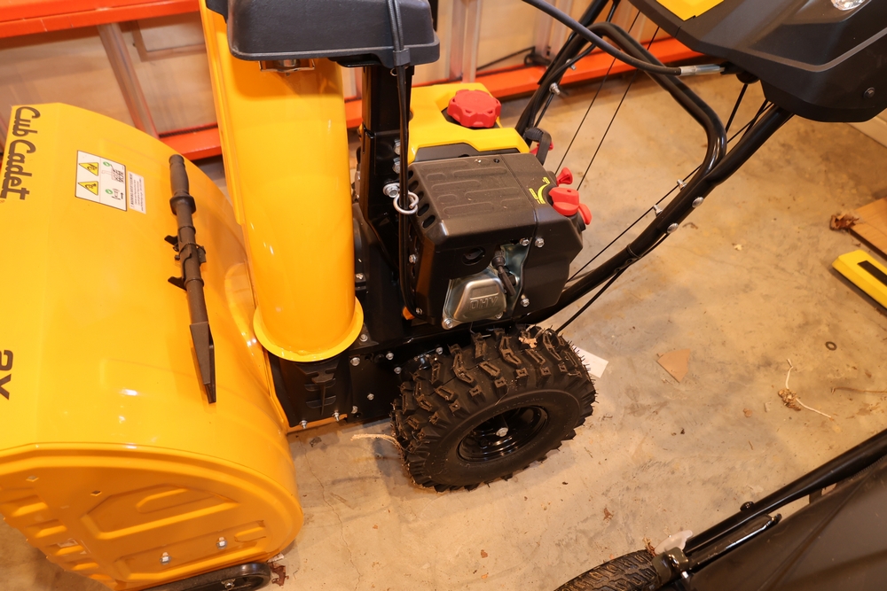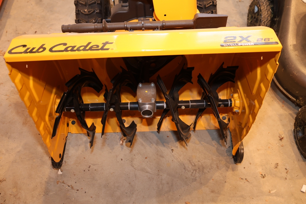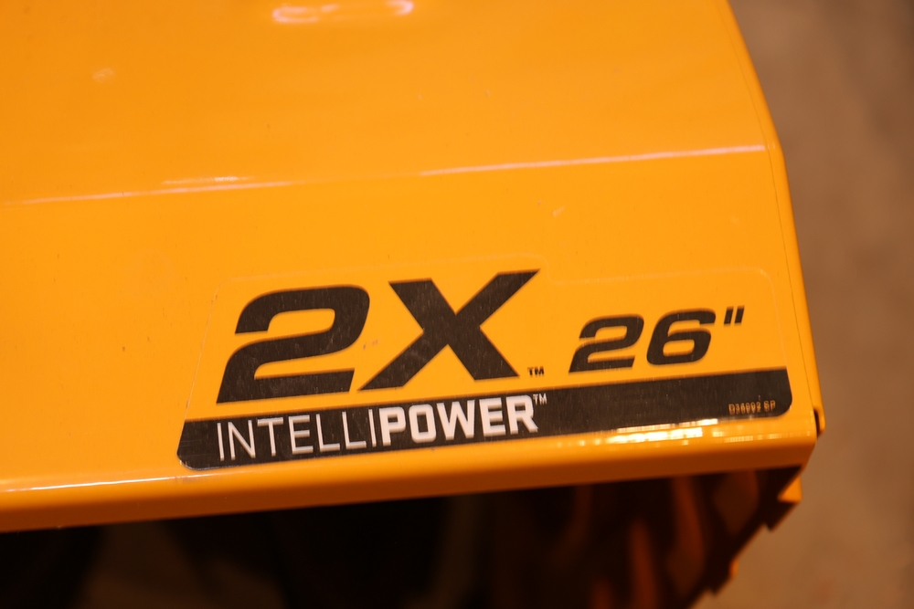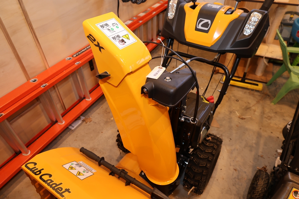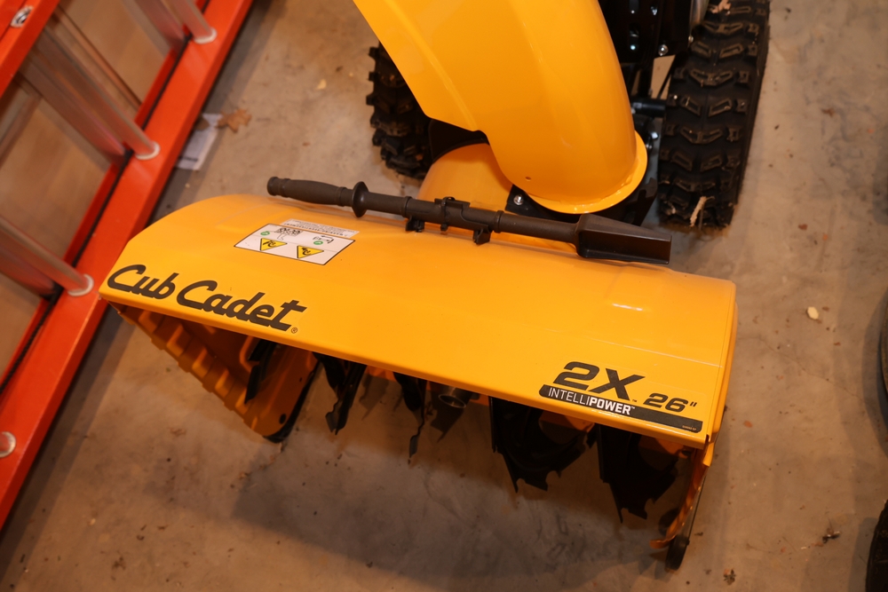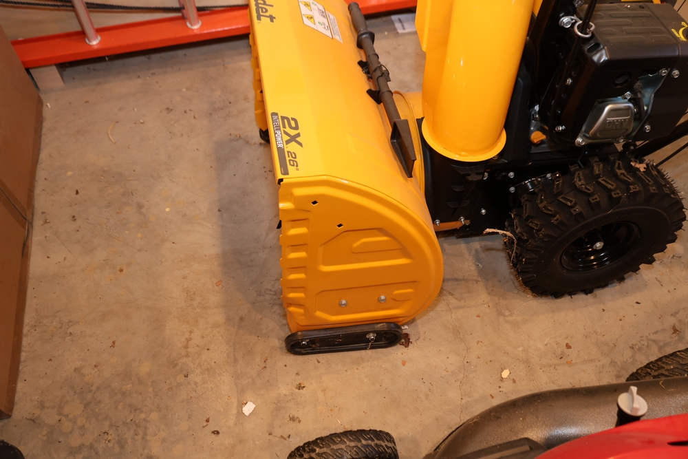 Cub Cadet 2X 26 inch IntelliPower two stage gas snow blower, model 31AM5HVSB56, featuring electric start, dual stage auger system, self propelled drive with multiple forward and reverse speeds, adjustable chute and deflector controls at the operator panel, and pneumatic tires No equipment is onsite to assit loading. Bring the proper tools, equipment, and help needed to load your items.