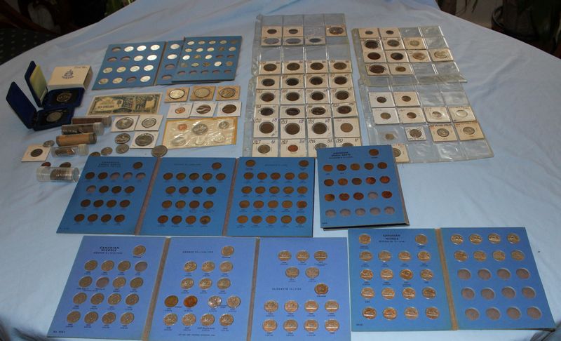 Foreign coins (mostly Canadian) plus Japanese Occupation Ten Dollar bill.