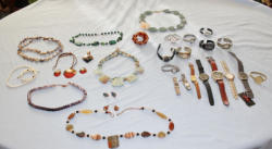 Stone and other quality costume jewelry plus wrist watches (functionality unknown). Shipping is available for this item.