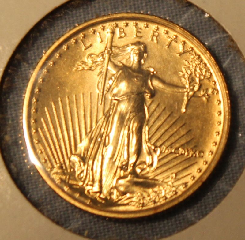 1990 (marked MCMXC) 1/10 oz Fine Gold American Eagle 5 Dollar Coin. Shipping is available for this item.
