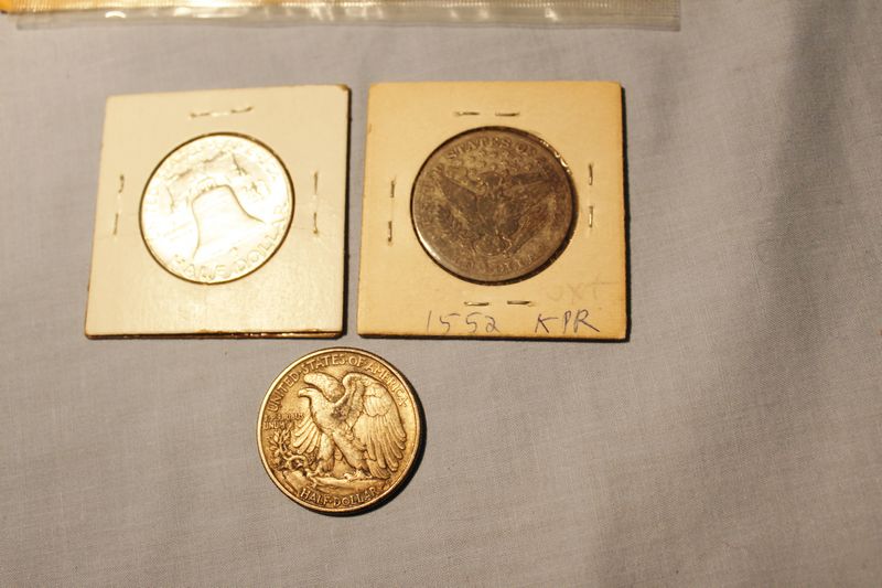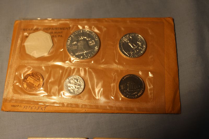 U.S. Silver coins including an 1882 S Morgan Silver Dollar; an 1892 Morgan Silver Dollar; a 1905 half dollar; a 1963 half dollar; a 1945 half dollar and a 1962 U.S. Mint Proof Coin Set with silver half dollar, quarter and dime. Shipping is available for this item.